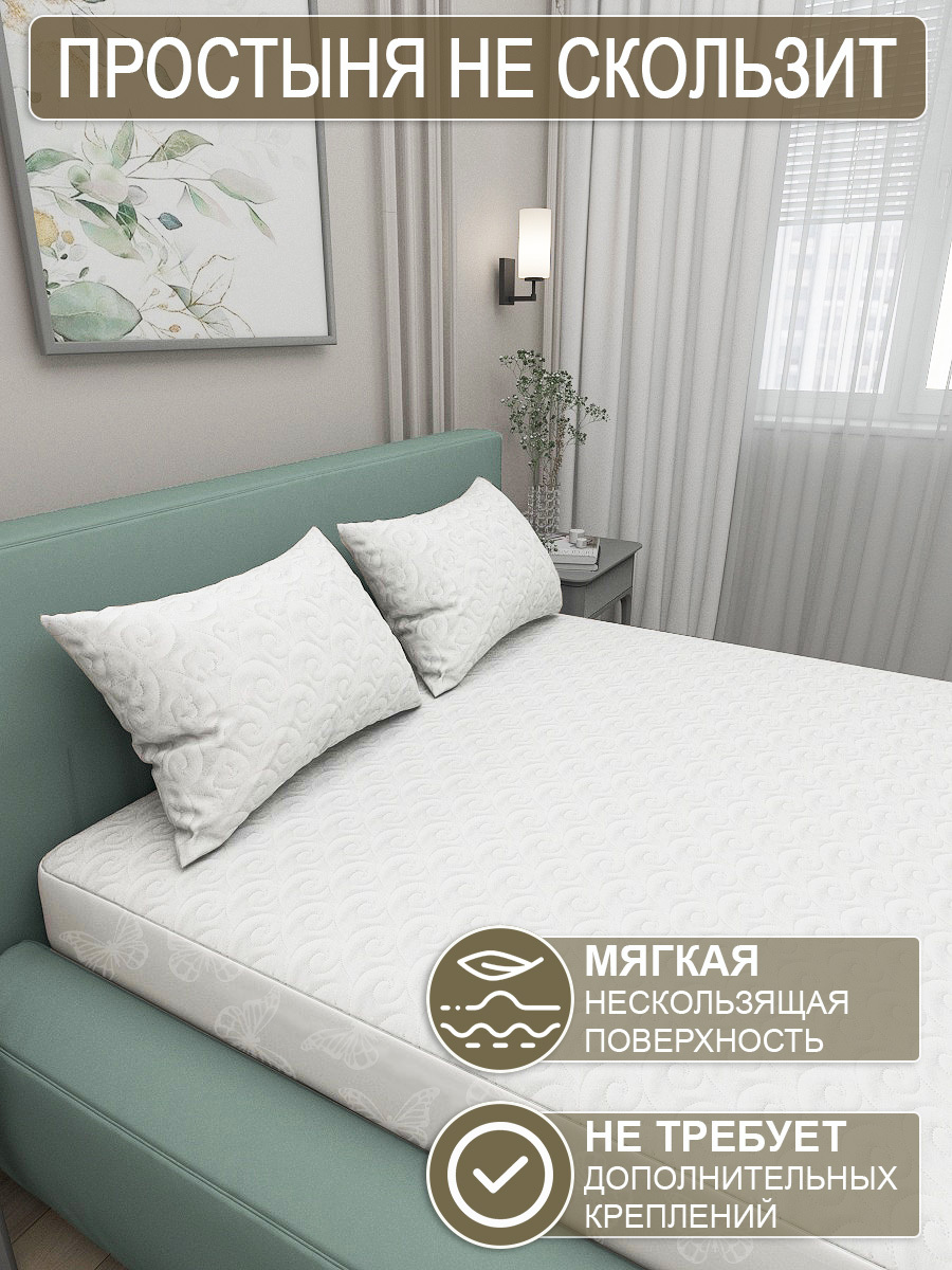 Наматрасник оснащен эластичной резинкой по всему периметру, которая позволяет жестко зафиксировать его на матрасе и не дает ему съезжать во время сна.