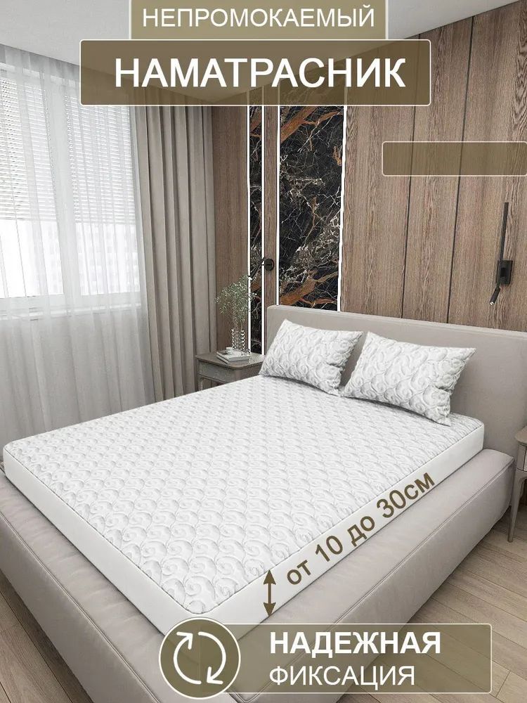 Стёганый наматрасник-чехол 80х160+30 см. нашего бренда BlessLigt с водонепроницаемыми защитными свойствами, на резинке по периметру. Изготовлен из качественного материала, который прекрасно подходит для длительного использования и легок в уходе. Наш наматрасник - это надежная защита для матраса, которая надежно защитит матрас и вашу мебель от влаги, загрязнений и изнашивания. Может быть использован как топпер для комфортного сна в спальню, так и для защиты матраса в детской комнате. Крепление к матрасу осуществляется за счет резинки по кругу наматрасника, что обеспечивает прочную и надежную посадку. Наш защитный наматрасник подходит на кровати в спальню, на диван и для мягкой мебели. Водонепроницаемый материал и бортики по кругу обеспечивают защиту матраса от воды, а благодаря резинкам на периметру наматрасника прочно фиксируется на матрасе.Уникальное полотно наматрасника состоит из 3 слоев. Верхний – ткань из высококачественной микрофибры (100% полиэстер) как материал верха - мягкий и прочный материал, который не даст усадки при стирке. Внутренний слой – полиэфирное волокно, которое хорошо удерживает и собирает тепло, обладает терморегулирующими свойствами во время сна. Наполнитель распределен равномерно и не сбивается благодаря оригинальному рисунку стежки. Нижний – ламинирован гипоаллергенной полиуретановой мембраной, не пропускает влагу. Чехол на матрас 80х190 обеспечит комфорт спальному месту и не даст простыне скользить. Непромокаемый стеганый чехол на матрас прекрасно защищает поверхность матраса от влаги и грязи. Наматрасник водонепроницаемый 80*190 выдерживает большое количество стирок и имеет длительный срок эксплуатации. Все наши наматрасники прошли тщательную проверку качества, поэтому вы можете быть уверены в их прочности и долговечности. Они прекрасно сочетаются с любой мебелью и представлены в белом цвете.Белый чехол в спальню отлично сочетается с белой мебелью в вашем доме, подходит для детской кровати в детскую комнату для мальчика и для девочки. Защита мебели от кошек. Для мам и малышей. Дополнительными плюсами является то, что он не требует глажения, антиаллергенен и приятен на ощупь. Советы по уходу: не рекомендуется отбеливать хлором, химчистка, стирать в стиральной машине только в щадящем режиме, при этом сушить и выжимать в машине наматрасник нельзя, оптимальная температура воды при стирке - 40 градусов. Наматрасники BlessLight представлены в размерах : 60Х120 см, 80х190 см, 90х190 см, 100х190 см, 110х190 см, 120х190 см, 140х190 см, 150х190 см, 160х190 см, 170х190 см, 180х190 см, 190х190 см, 80х200 см, 90х200 см, 100х200 см, 110х200 см, 120х200 см, 140х200 см, 150х200 см, 160x200 см, 170х200 см,180х200 см, 190х200 см, 200х200 см.Защита вашего матраса и сохранение его чистоты - это то, что мы гарантируем с нашим стеганым водонепроницаемым наматрасником. Приобретите наш наматрасник и вы останетесь довольны его качеством и удобством использования. Этот наматрасник - отличный выбор для мам, которые заботятся об удобстве своих малышей и людей, которые ценят комфортный сон в своей спальне.