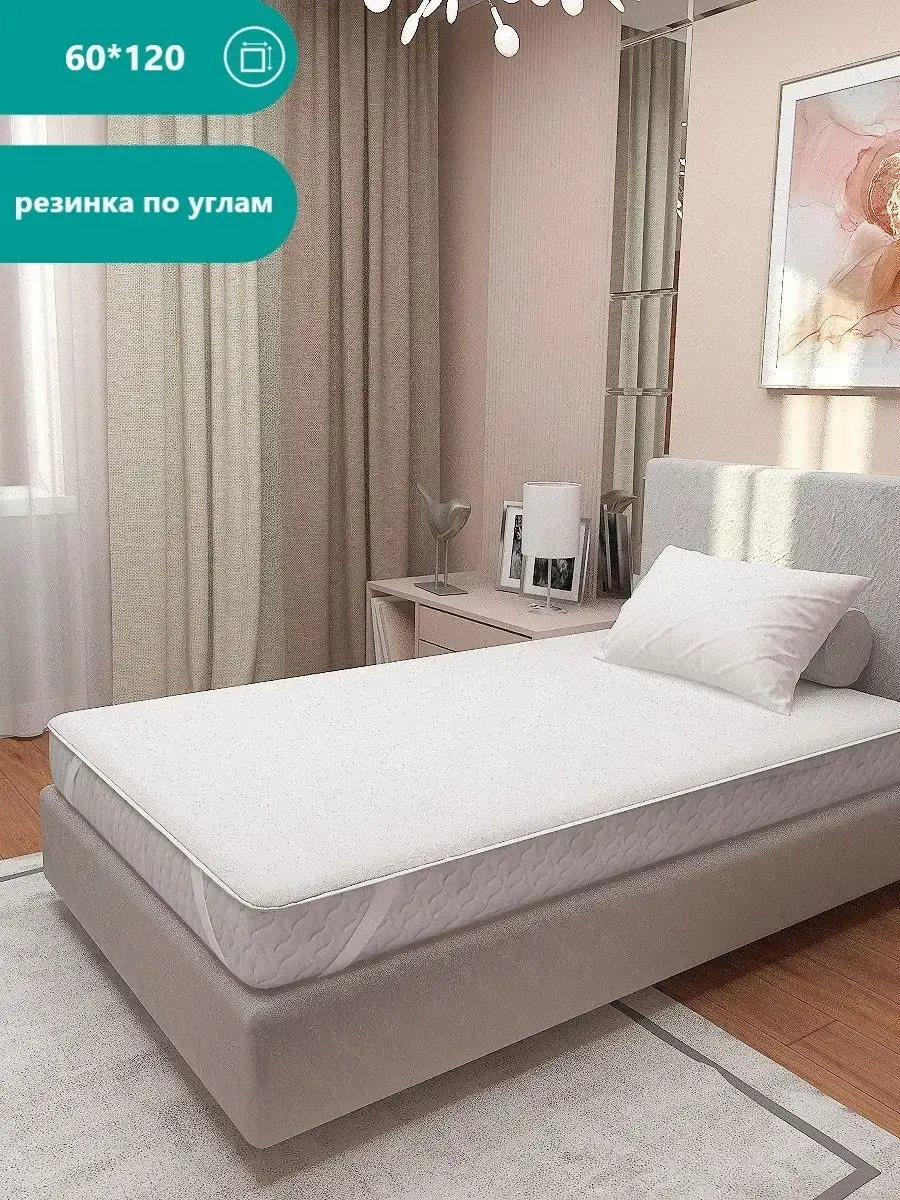 Наматрасник непромокаемый размер 60х120 водонепроницаемый на резинках по углам - надежная защита для матраса, для топпера ikea. Наматрасник непромокаемый 60 120 см изготовлен из махрового трикотажа 100% хлопок с мембранным покрытием мулитон аквастоп aquastop. Крепление к матрасу осуществляется за счет 4-х резинок по углам наматрасника. Наш намотрасник подходит на кровать в спальню, на диван, и для мягкой мебели. Чехол на матрас 60х120 обеспечит комфорт спальному месту и не даст простыне скользить. Непромокаемый чехол на матрас прекрасно защищает поверхность матраса от влаги и грязи. Наматрасник водонепроницаемый 60*120 выдерживает большое количество стирок и имеет длительный срок эксплуатации. Белый чехол в спальню отлично сочетается с белой мебелью в вашем доме, подходит для детской кровати в детскую комнату для мальчика и для девочки. Состав: материал верха 100% хлопок, материал низа - полеуриетановая мембрана (100% полиэстер) - мягкий и прочный материал, который не даст усадки при стирке. Гигроскопичен и гипоалергенный топер. Защита мебели от кошек. Для мам и малышей. Дополнительными плюсами является то, что он не требует глажения, антиаллергенен и приятен на ощупь. Советы по уходу: не рекомендуется отбеливать хлором, химчистка, стирать в стиральной машине только в щадящем режиме, при этом сушить и выжимать в машине наматрасник нельзя, оптимальная температура воды при стирке - 40 градусов. Наматрасники представлены в размерах: 60Х120 см, 80х190 см, 120х190 см, 140х190 см, 160х190 см, 80х200, 90х200 см, 120х200 см, 140х200 см, 160x200 см, 180х200 см, 200х200 см.