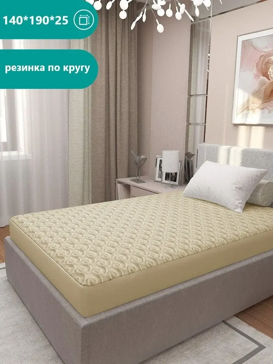 Представляю вашему вниманию стеганный наматрасник 140х190 на резинке из микрофибры. Наш наматрасник - это надежная защита для матраса, которая надежно защитит матрас и вашу мебель от загрязнений и изнашивания. Крепление к матрасу осуществляется за счет резинки по кругу наматрасника, что обеспечивает прочную и надежную посадку. Наш защитный наматрасник подходит на кровати в спальню, на диван и для мягкой мебели.Защитный наматрасник подходит для матрасов высотой до 30 см включительно, т.к имеет защитный бортик. Если ваш матрас меньшей толщины, то излишки бортика будут собираться под матрасом. У топпера имеются защитные бортики для кровати. Мягкий чехол на матрасе обеспечит комфорт спальному месту и не даст простыне скользить. Он выдерживает большое количество стирок и имеет длительный срок эксплуатации. Состав наматрасника: материал верха и низа - микрофибра (100% полиэстер) - мягкий и прочный материал, который не даст усадки при стирке. Наполнитель - полиэфирное волокно. Наполнитель хорошо удерживает и собирает тепло, обладает терморегулирующими свойствами во время сна, гигроскопичен, гипоаллергенный топпер. Наш наматрасник будет красивым аксессуаром, который отлично сочетается с мебелью в вашем доме. Он подходит для детской кровати в детскую комнату для мальчика и для девочки. Нами рекомендуется стирать наматрасник только в щадящем режиме, при этом сушить и выжимать в машине нельзя. Оптимальная температура воды при стирке - 40 градусов. Наматрасник является антиаллергенным, приятен на ощупь и не требует глажения.