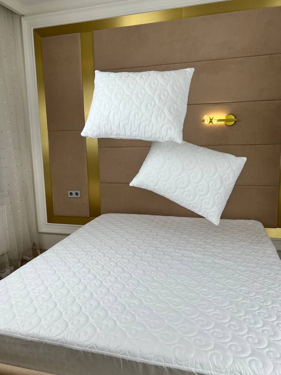 Крепление стеганной наволочки к подушке осуществляется за счет молнии по периметру. Наперник имеет длительный срок эксплуатации и выдерживает большое количество стирок. Он также отлично сочетается с белой мебелью в вашем доме и подходит для детской кровати в детскую комнату для мальчика и для девочки.