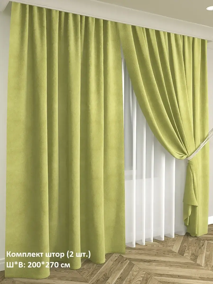 Комплект штор - 2шт изготовлены из плотной, мягкой, ткани. Комплект штор состоит из двух полотен, высота каждой 270см, ширина 200см, необыкновенно красивые, станут стильным декором для комнат в вашем доме. Шторы будут отличным аксессуаром для гостиной, для спальни, для кухни и в детскую комнату. В комплекте к занавеске имеется крепление к карнизу для крючков или штанги. К портьере пришита шторная белая лента шириной 6см, которая легко стягивается и создает аккуратные складки. (Обязательно проверьте нити в шторной ленте, они должны быть надежно завязаны с одного края). Плотная занавеска с элегантными складками, идеально вписывается в интерьер. Шторы слегка пропускают свет, устойчивы к воздействию прямых солнечных лучей. В составе ткани полиэфирное волокно, что делает изделие практичными и устойчивыми к большому количеству стирок. Уход: стирка при 40 градусах, деликатный отжим, отбеливание запрещено.
