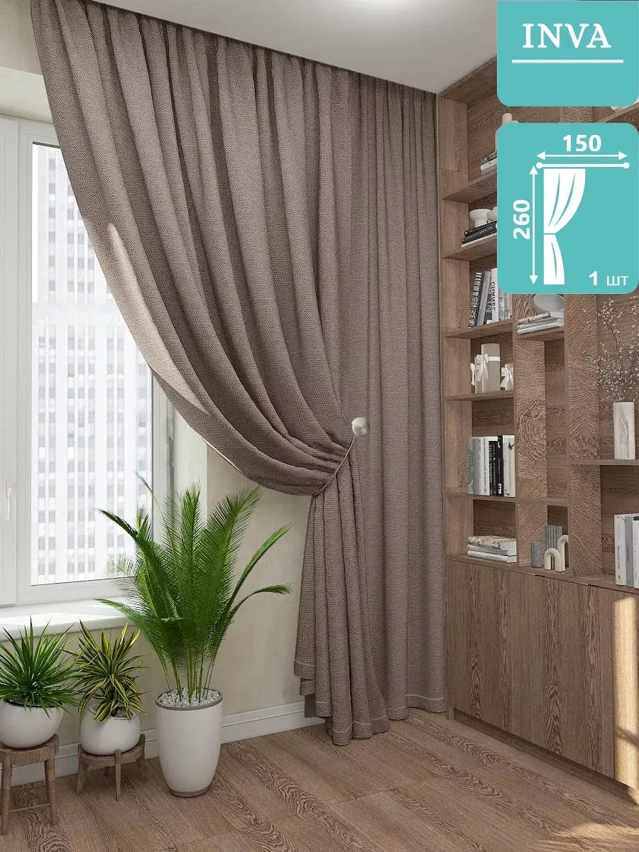 Шторы - 1шт изготовлены из плотной, мягкой, ворсистой ткани, с благородным отливом. Высота 260см и ширина 150см, необыкновенно красивые, станут стильным декором для комнат в вашем доме. Ткань защищает от солнечных лучей на 75-80%, мягкая структура ткани позволяет уложить ткань в красивые складки. Шторы станут отличным аксессуаром для гостиной, для спальни, для кухни и в детскую комнату. В комплекте к занавеске имеется крепление к карнизу для крючков или штанги. К портьере пришита шторная белая лента шириной 6см, которая легко стягивается и создает аккуратные складки. (Обязательно проверьте нити в шторной ленте - они должны быть надежно завязаны с одного края). Мягкая, плотная занавеска с элегантными складками, идеально вписывается в интерьер. Шторы слегка пропускают свет, устойчивы к воздействию прямых солнечных лучей. В составе ткани полиэфирное волокно, что делает изделие практичными и устойчивыми к большому количеству стирок. Уход: стирка при 40 градусах, деликатный отжим, отбеливание запрещено. Возможно незначительное отличие цвета от изображения на мониторе ввиду различных настроек и цветопередачи монитора и фототехники.
