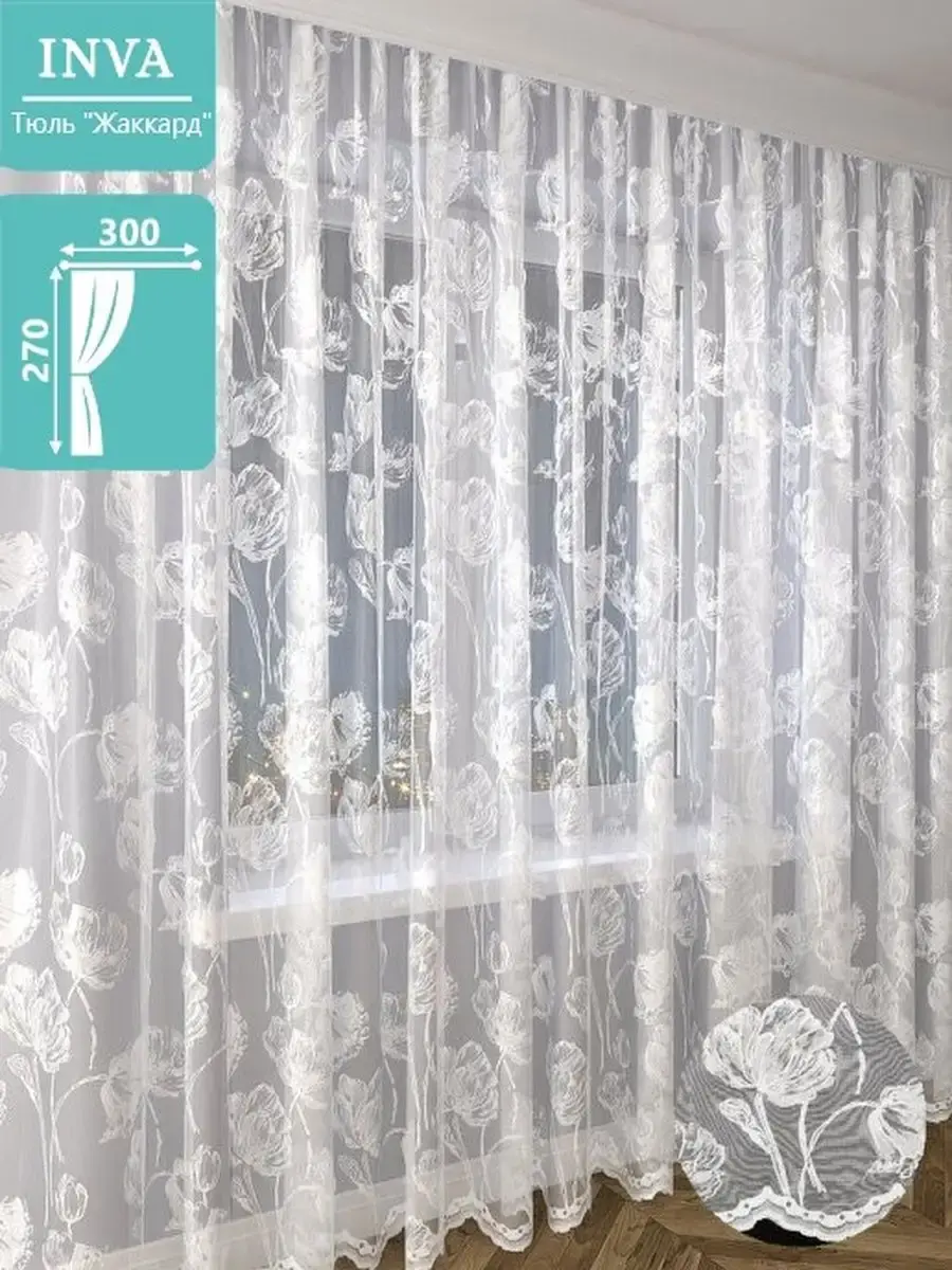 Готовая тюль сетка белая Жаккард 1 шт с рельефным рисунком. Идеально подойдет для оформления интерьера в любой комнате, высота 270 см ширина 300 см. Воздушная, легкая и красивая, будет стильным декором для комнат в вашем доме. Длинная декоративная тюлевая штора на шторной ленте с жаккардовым рисунком на сетке 270*300 будет отличным аксессуаром в гостиную, в спальню, для кухни и в детскую комнату или в качестве декора в беседке в саду. Она выполнена из качественного полотна из Турции. Придает уют и понравится и взрослым и детям. Имеет 3 варианта крепления: на крючки с помощью шторной ленты, на кольца или на штангу диаметром до 20 мм. Интерьерные жаккардовые шторы-сетка с рельефным рисунком 2,7 м х 3 м, сочетаются с портьерами, с короткими и длинными нитяными, рулонными шторами. С гардинами канвас, лен, мрамор, рогожка. Со шторами блэкаут blackout. Длинный тюль-сетка Жаккард украсит оконный проем в любой комнате: в столовой, кабинете и детской, на кухне как кухонный вариант. Вы можете повесить тюль на гардину на балконе, лоджии, веранде или в качестве декора в беседке в саду. Зановеска сетка с рельефным рисунком стягивается на четыре кордовые нити и создает аккуратные складки в форме "бабочки". Обязательно проверьте нити в шторной ленте, они должны быть надежно завязаны с одного края. Мягкая, легкая туль с элегантными складками, идеально вписывается в интерьер. Сетка Жакакард с рисунком хорошо пропускает свет, устойчива к воздействию прямых солнечных лучей. В составе ткани полиэфирное волокно, что делает изделие практичным и устойчивым к большому количеству стирок. Уход: стирка при 30 градусах, деликатный отжим, отбеливание запрещено. Тюль Турция.