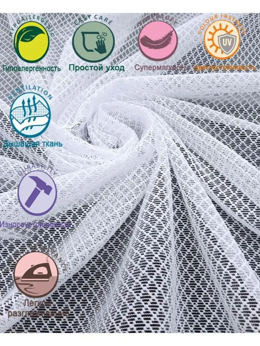 Готовая тюль сетка белая Жаккард 1 шт с рельефным рисунком. Идеально подойдет для оформления интерьера в любой комнате, высота 270 см ширина 400 см. Воздушная, легкая и красивая, будет стильным декором для комнат в вашем доме. Длинная декоративная тюлевая штора на шторной ленте с жаккардовым рисунком на сетке 270*400 будет отличным аксессуаром в гостиную, в спальню, для кухни и в детскую комнату или в качестве декора в беседке в саду. Она выполнена из качественного полотна из Турции. Придает уют и понравится и взрослым и детям. Имеет 3 варианта крепления: на крючки с помощью шторной ленты, на кольца или на штангу диаметром до 20 мм. Интерьерные жаккардовые шторы-сетка с рельефным рисунком 2,7 м х 4 м, сочетаются с портьерами, с короткими и длинными нитяными, рулонными шторами. С гардинами канвас, лен, мрамор, рогожка. Со шторами блэкаут blackout. Длинный тюль-сетка Жаккард украсит оконный проем в любой комнате: в столовой, кабинете и детской, на кухне как кухонный вариант. Вы можете повесить тюль на гардину на балконе, лоджии, веранде или в качестве декора в беседке в саду. Зановеска сетка с рельефным рисунком стягивается на четыре кордовые нити и создает аккуратные складки в форме "бабочки". Обязательно проверьте нити в шторной ленте, они должны быть надежно завязаны с одного края. Мягкая, легкая туль с элегантными складками, идеально вписывается в интерьер. Сетка Жакакард с рисунком хорошо пропускает свет, устойчива к воздействию прямых солнечных лучей. В составе ткани полиэфирное волокно, что делает изделие практичным и устойчивым к большому количеству стирок. Уход: стирка при 30 градусах, деликатный отжим, отбеливание запрещено. Тюль Турция.
