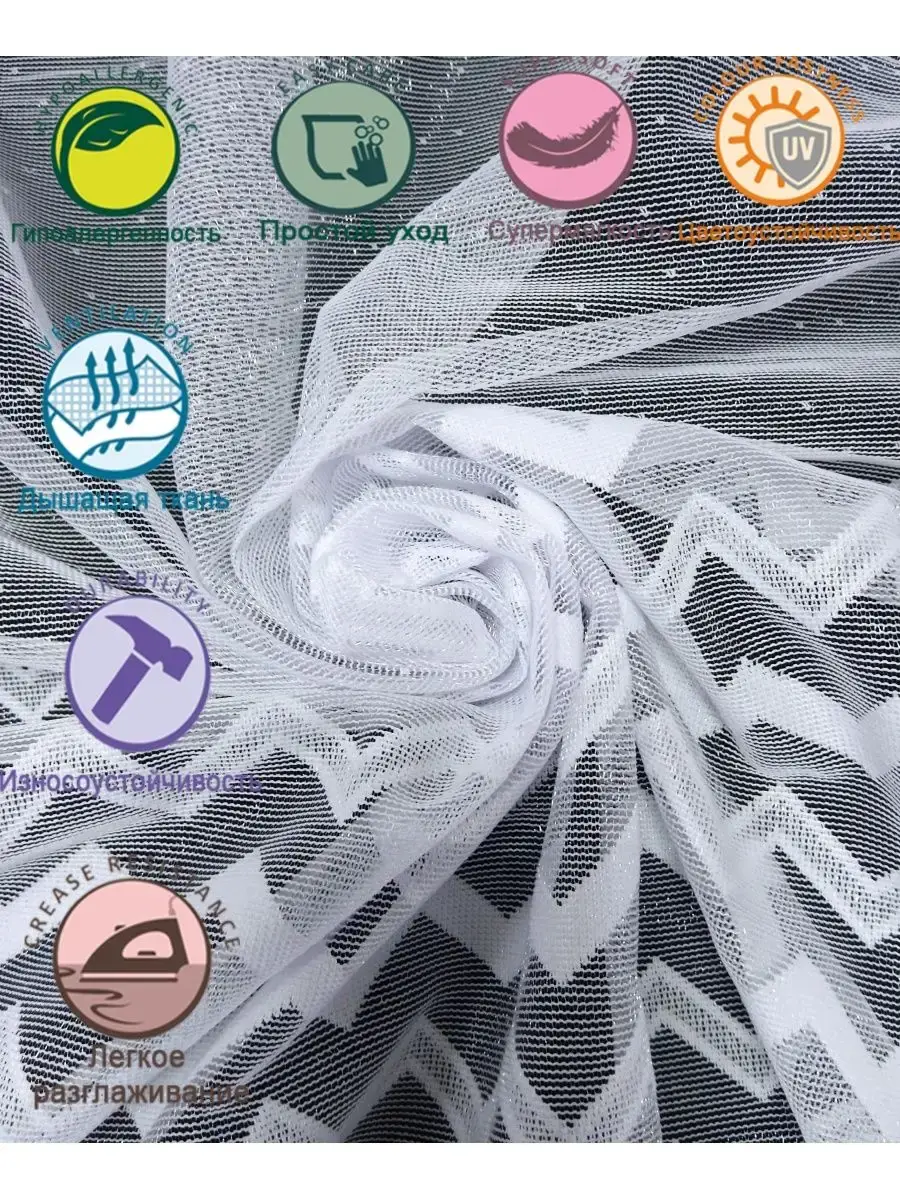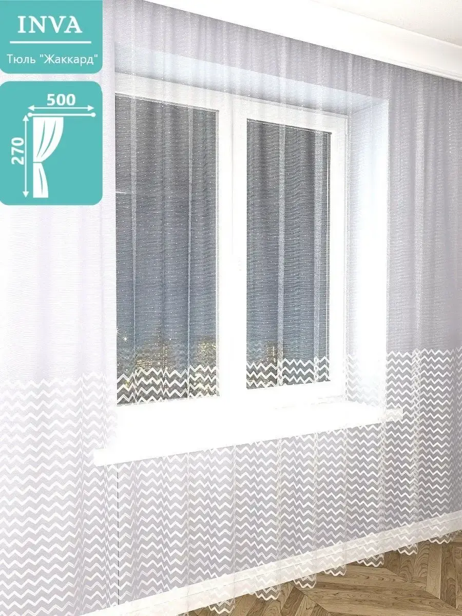 Тюль сетка белая жаккард 1 шт с рельефным рисунком, высота 270 см ширина 500 см. Жаккардовая тюль на шторной ленте с рисунком на сетке 270*500 будет отличным украшением в гостиную, в спальню, для кухни и в детскую комнату или в качестве декора в беседке в саду. Она выполнена из качественного полотна из Турции. Имеет 3 варианта крепления: на крючки с помощью шторной ленты, на кольца или на штангу диаметром до 30 мм. Гардина с рельефным рисунком стягивается на четыре кордовые нити и создает аккуратные складки в форме "бабочки". Обязательно проверьте нити в шторной ленте, они должны быть надежно завязаны с одного края. Сетка жаккард с рисунком хорошо пропускает свет, устойчива к воздействию прямых солнечных лучей. В составе ткани полиэфирное волокно, что делает изделие практичным и устойчивым к большому количеству стирок. Уход: стирка при 30 градусах, деликатный отжим, отбеливание запрещено.