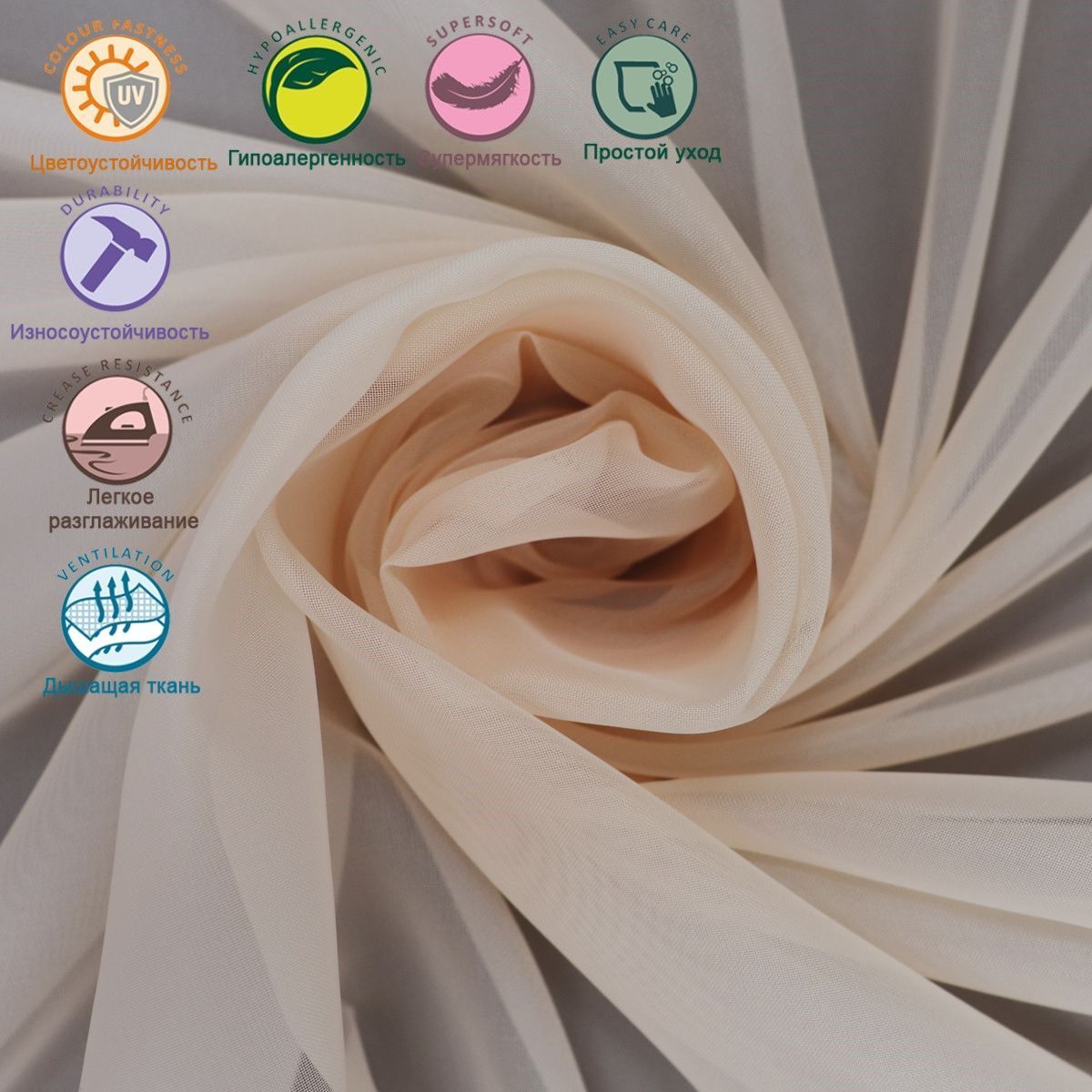 Тюль "BlessLight" 1 шт из полупрозрачной вуали, персикового цвета высота 240 см., ширина 600 см., необыкновенно воздушная, легкая и красивая, будет стильным декором для комнат в вашем доме. Молочная тюль 240х600 будет отличным аксессуаром для гостиной, для спальни для кухни и в детскую комнату. К шторе пришита шторная лента шириной 6 см., которая имеет 3 способа крепления к карнизу: на кольца, на штангу, и на крючки. Легко стягивается и создает красивые, аккуратные складки. Рекомендуемая сборка 1:2. Чтобы правильно подобрать тюль по ширине, рекомендуем замерить ширину Вашего карниза и умножить на 2, таким образом получите оптимальную ширину тюля, затем можно стянуть шторную ленту до ширины карниза, образуя красивые изящные складки. Обязательно проверьте кордовые нити – они должны быть надежно завязаны с двух сторон, в противном случае во время стягивания они могут вылететь, чтобы нити не торчали, их можно заправить в кармашки.Мягкая, легкая вуаль с элегантными складками, идеально вписывается в интерьер. Тюль хорошо пропускает свет, устойчив к воздействию прямых солнечных лучей. Тюль вуаль молочная 240см на 600см для комнаты представляет собой тонкую нежную ткань, которую можно использовать в виде лёгких занавесок самостоятельно, а также составлять комплекты с более плотными шторами, с рулонными шторами, гардинами, канвас, лен, мрамор, рогожка, комплект шторы блэкаут blackout. Занавески представлены в разных цветах и подойдут в дом, квартиру, для дачи и на балкон. В составе ткани шторы полиэфирное волокно, что делает изделие практичными и устойчивыми к большому количеству стирок. Рекомендация по уходу: бережная стирка при 30-40 градусах, деликатный отжим, лёгкая глажка, отбеливать запрещено. В комплекте - 1 штора 240х600. Возможны отклонения полученных размеров от указанных на этикетке и сайте (+-2см.). Оттенок изделия может отличаться от представленных на сайте фотографий от изображения на вашем устройстве. Тюль изготавливается на собственном производстве в России, с соблюдением контроля качества. Будем рады обратной связи в виде отзыва, так вы помогаете нам совершенствоваться и изготавливать лучшие шторы для вас!