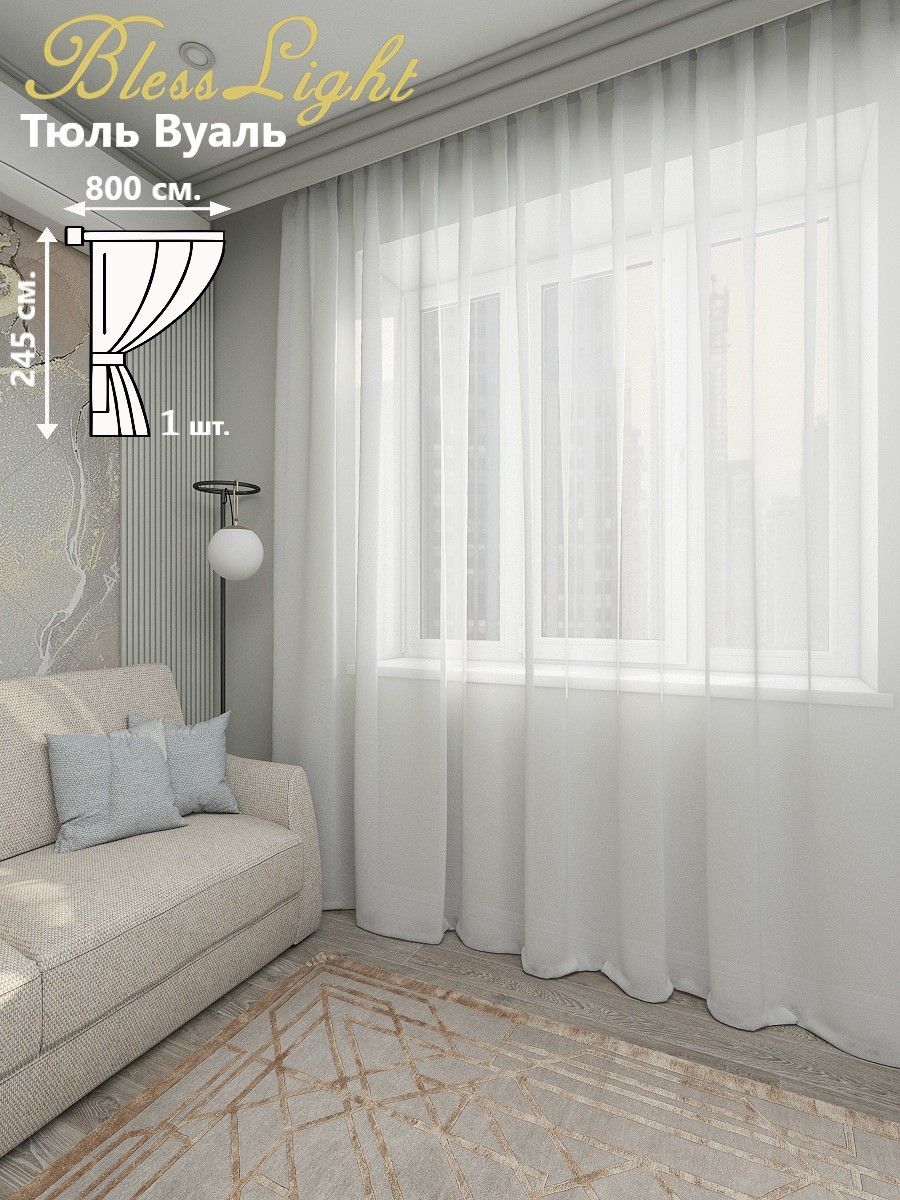 Тюль "BlessLight" 1 шт из полупрозрачной вуали, белого цвета высота 260 см., ширина 200 см., необыкновенно воздушная, легкая и красивая, будет стильным декором для комнат в вашем доме. Белая тюль 260х200 будет отличным аксессуаром для гостиной, для спальни для кухни и в детскую комнату.