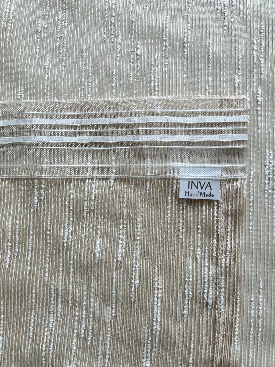 К шторе пришита шторная лента шириной 6 см., которая имеет 3 способа крепления к карнизу: на кольца, на штангу, и на крючки. Легко стягивается и создает красивые, аккуратные складки. Рекомендуемая сборка 1:2.