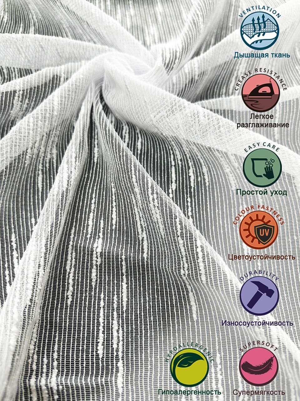 Оттенок изделия может отличаться от представленных на сайте фотографий от изображения на вашем устройстве. Тюль изготавливается на собственном производстве в России, с соблюдением контроля качества.