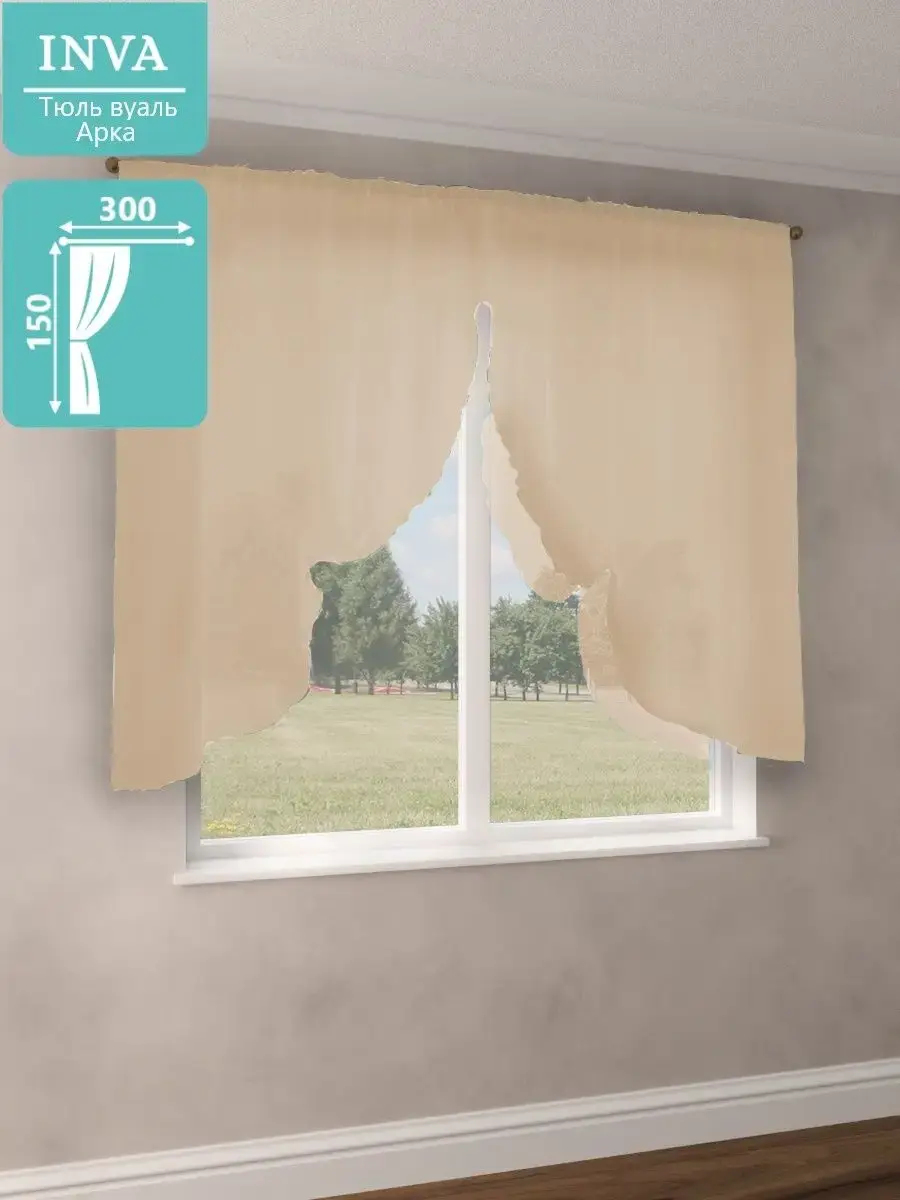 Тюль на кухню короткая в форме арки из полупрозрачной вуали, высотой 150 см ширина 300 см. Эти шторы для кухни будут стильным декором для комнат в вашем доме. Высота шторы позволяет использовать ее в качестве гардин для гостиной, для спальни, для кухни и в детскую комнату. В комплекте гардина для штор имеет крепление к карнизу для крючков или штанги. Короткие занавески на кухню представлены в разных цветах и подойдут в дом, квартиру, для дачи и на балкон. Тюль подходит для потолочного карниза шириной до 300 сантиметров а так же для карниза со штангой с диаметром до 20 мм. Тюль арка имеет пришитую белую шторную ленту шириной 6см, которая легко стягивается на четыре кордовые нити и создает аккуратные складки в форме "бабочки". Обязательно проверьте нити в шторной ленте, они должны быть надежно завязаны с одного края. Мягкая, легкая занавеска с элегантными складками, идеально вписывается в интерьер. Тюль хорошо пропускает свет, устойчива к воздействию прямых солнечных лучей. В составе ткани полиэфирное волокно, что делает изделие практичным и устойчивым к большому количеству стирок. Уход: стирка при 40 градусах, деликатный отжим, отбеливание запрещено.