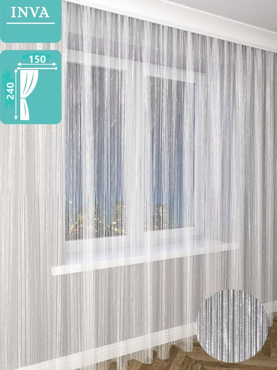 Готовый тюль сетка органза Дождик 1 шт идеально подойдет для оформления интерьера в любой комнате. Высота 240 см ширина 150 см, с утяжелителем по нижнему срезу. Длинная декоративная гардина на шторной ленте 240*150 будет отличным аксессуаром в гостиную, в спальню, на кухню и в детскую комнату или в качестве декора в беседке в саду. Имеет 3 варианта крепления: на крючки с помощью шторной ленты, на кольца или на штангу диаметром до 30 мм. К гардине пришита прозрачная лента шириной 6 см, которая легко стягивается на четыре кордовые нити и создает аккуратные складки в форме "бабочки". Обязательно проверьте нити в шторной ленте, они должны быть надежно завязаны с одного края. Сетка органза с рисунком хорошо пропускает свет, устойчива к воздействию прямых солнечных лучей. В составе ткани полиэфирное волокно, что делает изделие практичным и устойчивым к большому количеству стирок. Уход: стирка при 30 градусах, деликатный отжим, отбеливание запрещено. Тюль Турция.