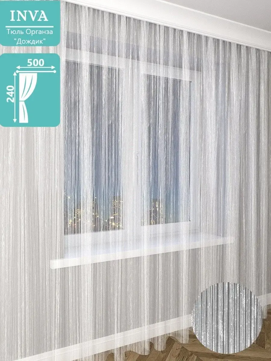 Готовый тюль сетка органза Дождик 1 шт идеально подойдет для оформления интерьера в любой комнате. Высота 240 см ширина 500 см. Необыкновенно воздушная, легкая и красивая, будет стильным декором для комнат в вашем доме. Длинная декоративная тюлевая штора на шторной ленте 240*500 будет отличным аксессуаром в гостиную, в спальню, на кухню и в детскую комнату или в качестве декора в беседке в саду. Она выполнена из качественного полотна из Турции. Придает уют и понравится и взрослым и детям. Имеет 3 варианта крепления: на крючки с помощью шторной ленты, на кольца или на штангу диаметром до 20 мм. Интерьерная штора органза с рисунком дождик сочетается с портьерами, с короткими и длинными нитяными, рулонными шторами. Подходит к гардинам канвас, лен, мрамор, рогожка и к шторам блэкаут. Тонкий тюль-сетка украсит оконный проем в любой комнате: в столовой, кабинете. Вы можете повесить тюль на балконе, лоджии, веранде или в качестве декора в беседке в саду. Зановеска сетка подойдет в дом, квартиру, для дачи. К шторе пришита шторная прозрачная лента шириной 6 см, которая легко стягивается на четыре кордовые нити и создает аккуратные складки в форме "бабочки". Обязательно проверьте нити в шторной ленте, они должны быть надежно завязаны с одного края. Мягкая, легкая туль с элегантными складками, идеально вписывается в интерьер. Сетка органза с рисунком хорошо пропускает свет, устойчива к воздействию прямых солнечных лучей. В составе ткани полиэфирное волокно, что делает изделие практичным и устойчивым к большому количеству стирок. Уход: стирка при 30 градусах, деликатный отжим, отбеливание запрещено. Тюль Турция.