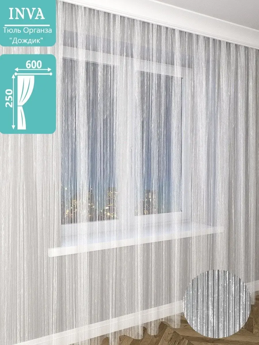 Готовый тюль сетка органза Дождик 1 шт идеально подойдет для оформления интерьера в любой комнате. Высота 250 см ширина 600 см. Необыкновенно воздушная, легкая и красивая, будет стильным декором для комнат в вашем доме. Длинная декоративная тюлевая штора на шторной ленте 250*600 будет отличным аксессуаром в гостиную, в спальню, на кухню и в детскую комнату или в качестве декора в беседке в саду. Она выполнена из качественного полотна из Турции. Придает уют и понравится и взрослым и детям. Имеет 3 варианта крепления: на крючки с помощью шторной ленты, на кольца или на штангу диаметром до 20 мм. Интерьерная штора органза с рисунком дождик сочетается с портьерами, с короткими и длинными нитяными, рулонными шторами. Подходит к гардинам канвас, лен, мрамор, рогожка и к шторам блэкаут. Тонкий тюль-сетка украсит оконный проем в любой комнате: в столовой, кабинете. Вы можете повесить тюль на балконе, лоджии, веранде или в качестве декора в беседке в саду. Зановеска сетка подойдет в дом, квартиру, для дачи. К шторе пришита шторная прозрачная лента шириной 6 см, которая легко стягивается на четыре кордовые нити и создает аккуратные складки в форме "бабочки". Обязательно проверьте нити в шторной ленте, они должны быть надежно завязаны с одного края. Мягкая, легкая туль с элегантными складками, идеально вписывается в интерьер. Сетка органза с рисунком хорошо пропускает свет, устойчива к воздействию прямых солнечных лучей. В составе ткани полиэфирное волокно, что делает изделие практичным и устойчивым к большому количеству стирок. Уход: стирка при 30 градусах, деликатный отжим, отбеливание запрещено. Тюль Турция.
