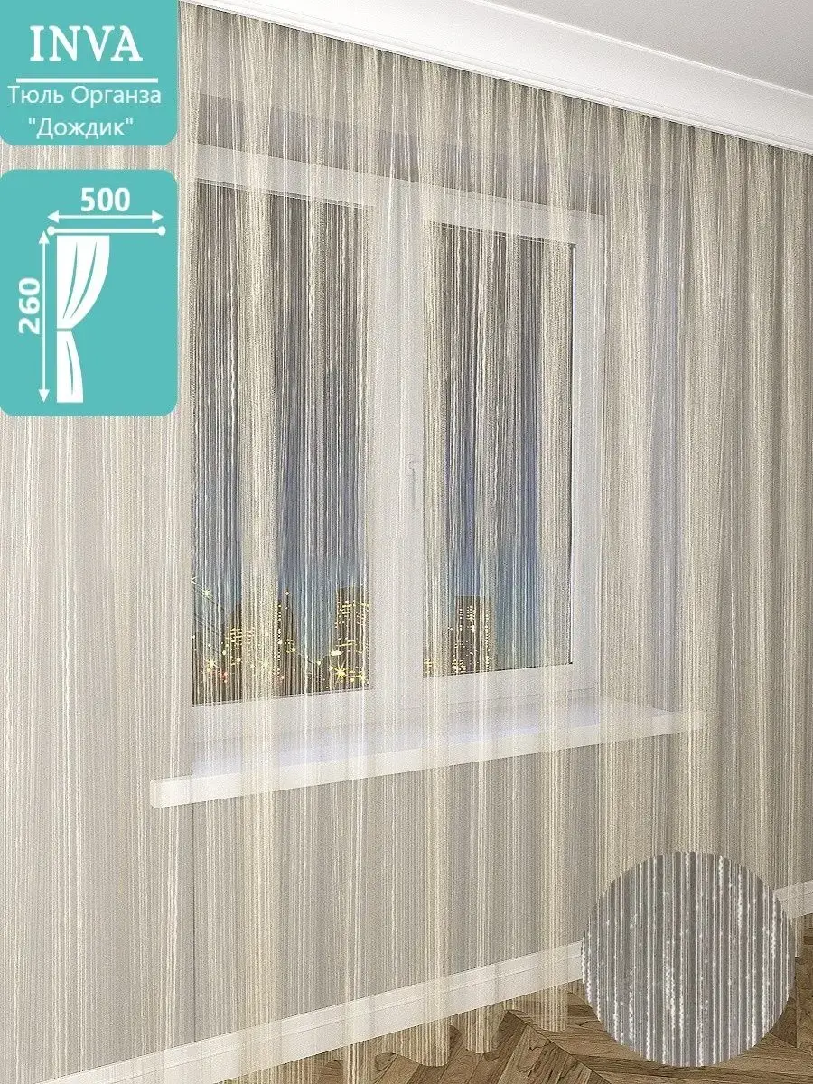 Готовый тюль сетка органза Дождик 1 шт идеально подойдет для оформления интерьера в любой комнате. Высота 260 см ширина 500 см. Необыкновенно воздушная, легкая и красивая, будет стильным декором для комнат в вашем доме. Длинная декоративная тюлевая штора на шторной ленте 260*500 будет отличным аксессуаром в гостиную, в спальню, на кухню и в детскую комнату или в качестве декора в беседке в саду. Она выполнена из качественного полотна из Турции. Придает уют и понравится и взрослым и детям. Имеет 3 варианта крепления: на крючки с помощью шторной ленты, на кольца или на штангу диаметром до 20 мм. Интерьерная штора органза с рисунком дождик сочетается с портьерами, с короткими и длинными нитяными, рулонными шторами. Подходит к гардинам канвас, лен, мрамор, рогожка и к шторам блэкаут. Тонкий тюль-сетка украсит оконный проем в любой комнате: в столовой, кабинете. Вы можете повесить тюль на балконе, лоджии, веранде или в качестве декора в беседке в саду. Зановеска сетка подойдет в дом, квартиру, для дачи. К шторе пришита шторная прозрачная лента шириной 6 см, которая легко стягивается на четыре кордовые нити и создает аккуратные складки в форме "бабочки". Обязательно проверьте нити в шторной ленте, они должны быть надежно завязаны с одного края. Мягкая, легкая туль с элегантными складками, идеально вписывается в интерьер. Сетка органза с рисунком хорошо пропускает свет, устойчива к воздействию прямых солнечных лучей. В составе ткани полиэфирное волокно, что делает изделие практичным и устойчивым к большому количеству стирок. Уход: стирка при 30 градусах, деликатный отжим, отбеливание запрещено. Тюль Турция.