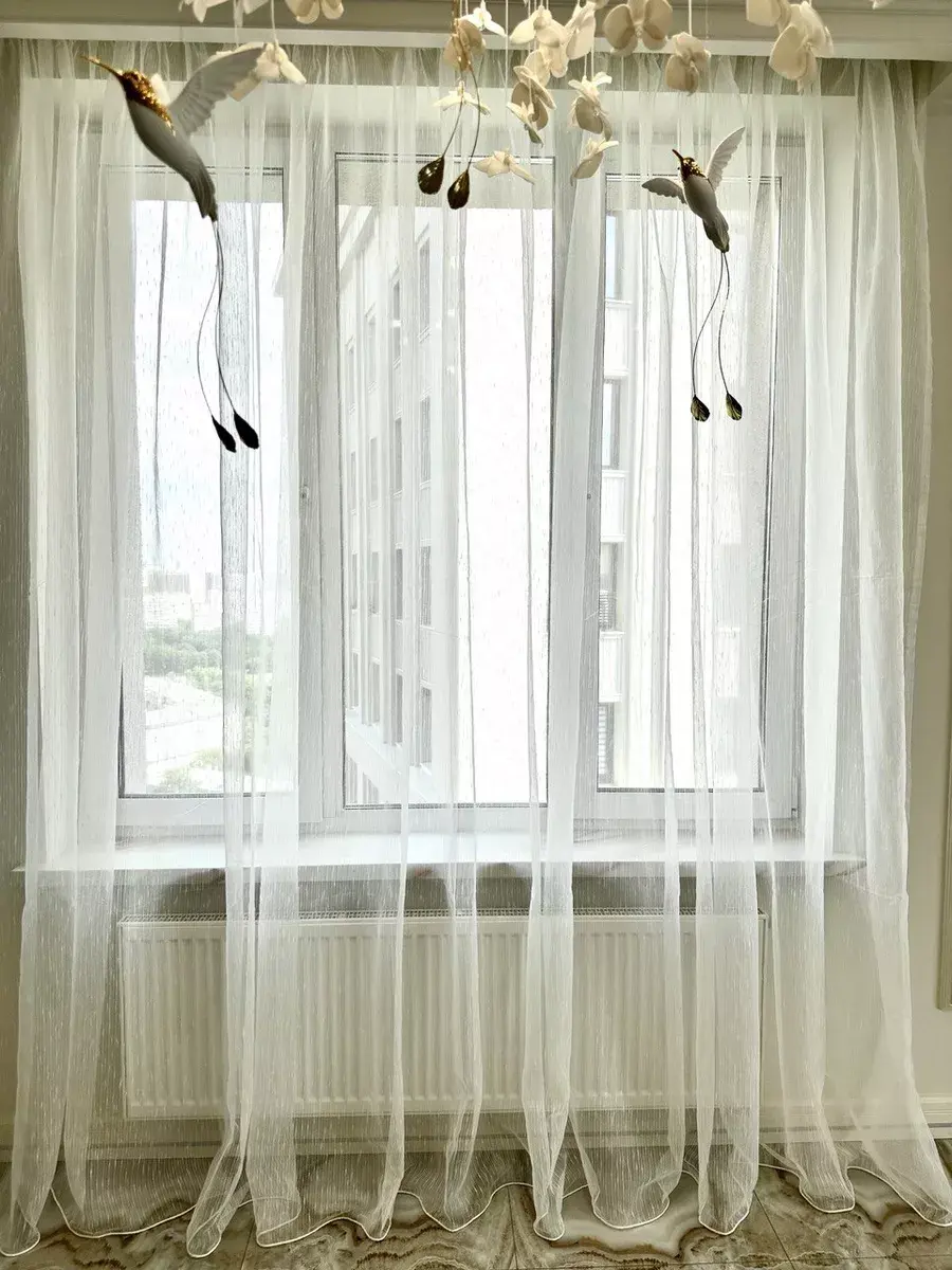 Готовый тюль сетка органза Дождик 1 шт идеально подойдет для оформления интерьера в любой комнате. Высота 270 см ширина 200 см с утяжелителем по нижнему срезу. Длинная декоративная гардина на шторной ленте 270*200 будет отличным аксессуаром в гостиную, в спальню, на кухню и в детскую комнату или в качестве декора в беседке в саду. Имеет 3 варианта крепления: на крючки с помощью шторной ленты, на кольца или на штангу диаметром до 30 мм. К гардине пришита прозрачная лента шириной 6 см, которая легко стягивается на четыре кордовые нити и создает аккуратные складки в форме "бабочки". Обязательно проверьте нити в шторной ленте, они должны быть надежно завязаны с одного края. Сетка органза с рисунком хорошо пропускает свет, устойчива к воздействию прямых солнечных лучей. В составе ткани полиэфирное волокно, что делает изделие практичным и устойчивым к большому количеству стирок. Уход: стирка при 30 градусах, деликатный отжим, отбеливание запрещено. Тюль Турция.