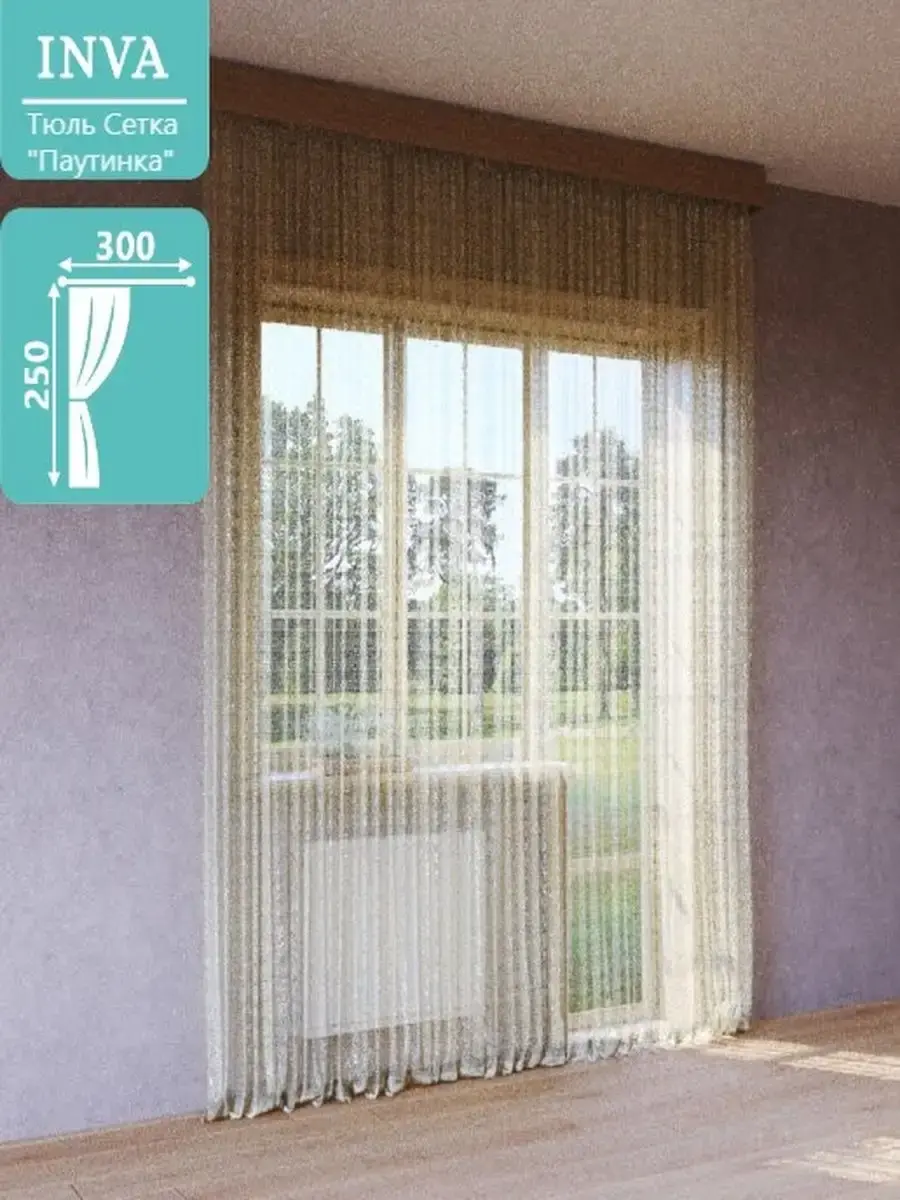 Тюль сетка Паутинка 1 шт полупрозрачная, с нежным узором идеально подойдет для оформления интерьера в любой комнате, высота 250 см ширина 300 см, необыкновенно воздушная, легкая и красивая, будет стильным декором для комнат в вашем доме. Декоративная однотонная тюлевая штора Паутинка 250*300 будет отличным аксессуаром для гостиной, для спальни, для кухни и в детскую комнату или в качестве декора в беседке в саду. Она выполнена из качественного полотна из Турции, ее состав это 100 процентный полиэстер. Придает уют и понравится и взрослым, и детям. В комплекте имеется крепление к карнизу для крючков или штанги. Сетка из синтетической ткани 250 на 300 сочетается как с портьерами, аксессуарами, с короткими и длинными нитяными, рулонными шторами, гардинами, канвас, лен, мрамор, рогожка, комплект шторы блэкаут blackout. Зановески с сеткой в виде паутинки представлены в разных цветах и подойдут в дом, квартиру, для дачи и на балкон. Тюль занавеска подходит для потолочного карниза шириной до 300 сантиметров а так же для карниза со штангой с диаметром до 20 мм. К шторе пришита шторная прозрачная лента шириной 6см, которая легко стягивается на четыре кордовые нити и создает аккуратные складки в форме "бабочки". Обязательно проверьте нити в шторной ленте, они должны быть надежно завязаны с одного края. Мягкая, легкая туль с элегантными складками, идеально вписывается в интерьер. Вуаль хорошо пропускает свет, устойчива к воздействию прямых солнечных лучей. В составе ткани полиэфирное волокно, что делает изделие практичным и устойчивым к большому количеству стирок. Уход: стирка при 40 градусах, деликатный отжим, отбеливание запрещено.