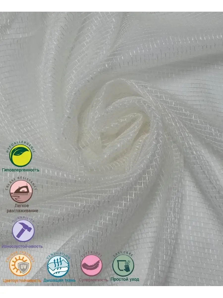 Тюль сетка 1 шт полупрозрачная, идеально подойдет для оформления интерьера в любой комнате. Высота 260 см ширина 600 см. Необыкновенно воздушная, легкая и красивая, будет стильным декором для комнат в вашем доме. Декоративная однотонная тюлевая штора 260*600 будет отличным аксессуаром для гостиной, для спальни, для кухни и в детскую комнату или в качестве декора в беседке в саду. Она выполнена из качественного полотна из Турции. Придает уют и понравится и взрослым, и детям. В комплекте имеется крепление к карнизу для крючков или штанги. Сетка 2,6 м х 6 м сочетается как с портьерами, аксессуарами, с короткими и длинными нитяными, рулонными шторами. С гардинами канвас, лен, мрамор, рогожка. С комплектом штор блэкаут. Зановески с сеткой подойдут в дом, квартиру, для дачи и на балкон. Тюль занавеска подходит для потолочного карниза шириной до 300 сантиметров а так же для карниза со штангой с диаметром до 20 мм. К шторе пришита шторная прозрачная лента шириной 6см, которая легко стягивается на четыре кордовые нити и создает аккуратные складки в форме "бабочки". Обязательно проверьте нити в шторной ленте, они должны быть надежно завязаны с одного края. Мягкая, легкая туль с элегантными складками, идеально вписывается в интерьер. Вуаль хорошо пропускает свет, устойчива к воздействию прямых солнечных лучей. В составе ткани полиэфирное волокно, что делает изделие практичным и устойчивым к большому количеству стирок. Уход: стирка при 40 градусах, деликатный отжим, отбеливание запрещено.