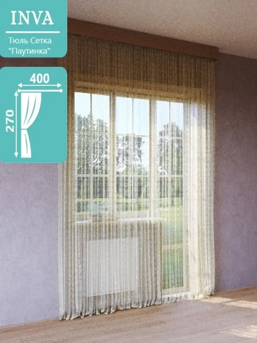 Тюль сетка Паутинка 1 шт полупрозрачная, с нежным узором идеально подойдет для оформления интерьера в любой комнате, высота 270 см ширина 400 см, необыкновенно воздушная, легкая и красивая, будет стильным декором для комнат в вашем доме. Декоративная однотонная тюлевая штора Паутинка 270*400 будет отличным аксессуаром для гостиной, для спальни, для кухни и в детскую комнату или в качестве декора в беседке в саду. Она выполнена из качественного полотна из Турции, ее состав это 100 процентный полиэстер. Придает уют и понравится и взрослым, и детям. В комплекте имеется крепление к карнизу для крючков или штанги. Сетка из синтетической ткани 270 400 сочетается как с портьерами, аксессуарами, с короткими и длинными нитяными, рулонными шторами, гардинами, канвас, лен, мрамор, рогожка, комплект шторы блэкаут blackout. Зановески с сеткой в виде паутинки представлены в разных цветах и подойдут в дом, квартиру, для дачи и на балкон. Тюль занавеска подходит для потолочного карниза шириной до 300 сантиметров а так же для карниза со штангой с диаметром до 20 мм. К шторе пришита шторная прозрачная лента шириной 6см, которая легко стягивается на четыре кордовые нити и создает аккуратные складки в форме "бабочки". Обязательно проверьте нити в шторной ленте, они должны быть надежно завязаны с одного края. Мягкая, легкая туль с элегантными складками, идеально вписывается в интерьер. Вуаль хорошо пропускает свет, устойчива к воздействию прямых солнечных лучей. В составе ткани полиэфирное волокно, что делает изделие практичным и устойчивым к большому количеству стирок. Уход: стирка при 40 градусах, деликатный отжим, отбеливание запрещено.