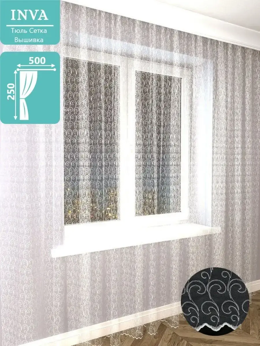 Готовая тюль штора сетка 1 шт с вышивкой, идеально подойдет для оформления интерьера в любой комнате, высота 250 см ширина 500 см. Воздушная, легкая и красивая, будет стильным декором для комнат в вашем доме. Длинная декоративная тюлевая занавеска на шторной ленте с вышивкой на сетке 250*500 будет отличным аксессуаром для гостиной, для спальни, для кухни и в детскую комнату или в качестве декора в беседке в саду. Она выполнена из качественного полотна из Турции. Придает уют и понравится и взрослым и детям. Имеет 3 варианта крепления: на крючки с помощью шторной ленты, на кольца или на штангу диаметром до 20 мм. Интерьерная штора-сетка с вышивкой 2,5 м х 5 м, сочетается с портьерами, с короткими и длинными нитяными, рулонными шторами. С гардинами канвас, лен, мрамор, рогожка. Со шторами блэкаут blackout. Тонкий тюль-сетка украсит оконный проем в любой комнате: в столовой, кабинете и детской, на кухне как кухонный вариант. Вы можете повесить тюль на гардину на балконе, лоджии, веранде или в качестве декора в беседке в саду. Зановеска сетка с нежной вышивкой подойдет в дом, квартиру, для дачи и на балкон. Тюль занавеска подходит для потолочного карниза шириной от 300 сантиметров а так же для карниза со штангой с диаметром до 20 мм. К шторе пришита шторная прозрачная лента шириной 6см, которая легко стягивается на четыре кордовые нити и создает аккуратные складки в форме "бабочки". Обязательно проверьте нити в шторной ленте, они должны быть надежно завязаны с одного края. Мягкая, легкая туль с элегантными складками, идеально вписывается в интерьер. Сетка с рисунком хорошо пропускает свет, устойчива к воздействию прямых солнечных лучей. В составе ткани полиэфирное волокно, что делает изделие практичным и устойчивым к большому количеству стирок. Уход: стирка при 30 градусах, деликатный отжим, отбеливание запрещено. Тюль Турция.