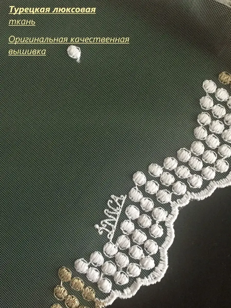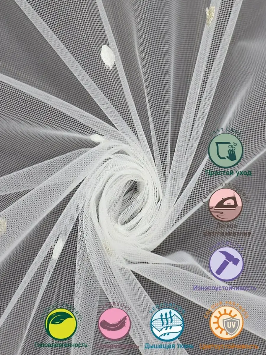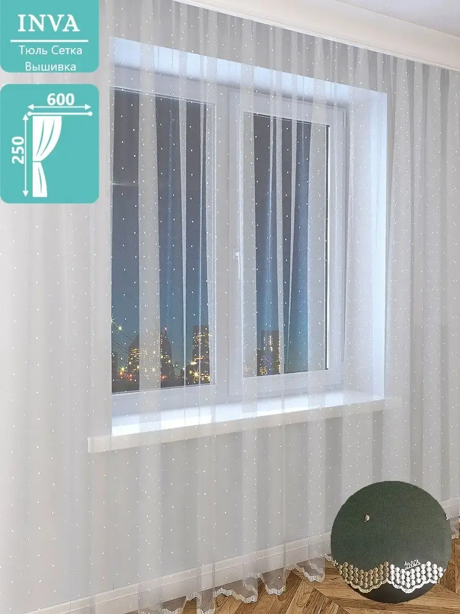 Тюль сетка 1 шт с вышивкой бусинки, идеально подойдет для оформления интерьера в любой комнате, высота 250 см ширина 600 см. Гардина на шторной ленте с вышивкой на сетке 250*600 будет отличным аксессуаром для гостиной, для спальни, для кухни и в детскую комнату или в качестве декора в беседке в саду. Имеет 3 варианта крепления: на крючки с помощью шторной ленты, на кольца или на штангу диаметром до 30 мм. К занавеске пришита прозрачная лента шириной 6см, которая легко стягивается на четыре кордовые нити и создает аккуратные складки в форме "бабочки" и имеет два ряда петель для регулирования высоты подвеса. Обязательно проверьте нити в шторной ленте, они должны быть надежно завязаны с одного края. Сетка с рисунком горох хорошо пропускает свет, устойчива к воздействию прямых солнечных лучей. В составе ткани полиэфирное волокно, что делает изделие практичным и устойчивым к большому количеству стирок. Не желтеет на солнце. Уход: стирка при 30 градусах, деликатный отжим, отбеливание запрещено. Тюль Турция.