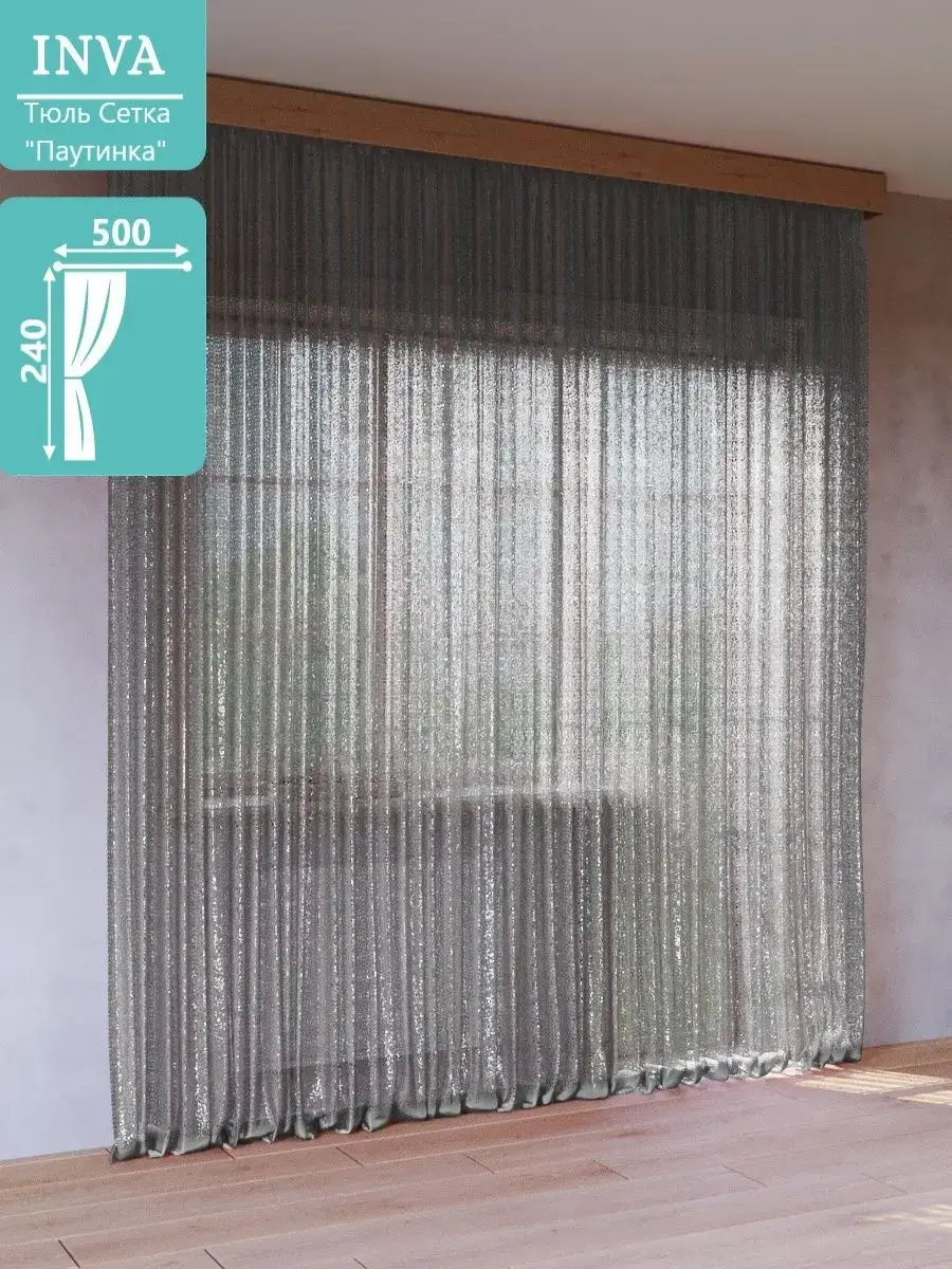Тюль сетка Паутинка 1 шт полупрозрачная, идеально подойдет для оформления интерьера в любой комнате. Высота 240 см ширина 500 см. Необыкновенно воздушная, легкая и красивая, будет стильным декором для комнат в вашем доме. Декоративная однотонная тюлевая штора Паутинка 240*500 будет отличным аксессуаром для гостиной, для спальни, для кухни и в детскую комнату или в качестве декора в беседке в саду. Она выполнена из качественного полотна из Турции. Придает уют и понравится и взрослым, и детям. В комплекте имеется крепление к карнизу для крючков или штанги. Сетка 2,4 м х 5 м сочетается как с портьерами, аксессуарами, с короткими и длинными нитяными, рулонными шторами. С гардинами канвас, лен, мрамор, рогожка. С комплектом штор блэкаут. Зановески с сеткой в виде паутинки подойдут в дом, квартиру, для дачи и на балкон. Тюль занавеска подходит для потолочного карниза шириной до 300 сантиметров а так же для карниза со штангой с диаметром до 20 мм. К шторе пришита шторная прозрачная лента шириной 6см, которая легко стягивается на четыре кордовые нити и создает аккуратные складки в форме "бабочки". Обязательно проверьте нити в шторной ленте, они должны быть надежно завязаны с одного края. Мягкая, легкая туль с элегантными складками, идеально вписывается в интерьер. Вуаль хорошо пропускает свет, устойчива к воздействию прямых солнечных лучей. В составе ткани полиэфирное волокно, что делает изделие практичным и устойчивым к большому количеству стирок. Уход: стирка при 40 градусах, деликатный отжим, отбеливание запрещено.