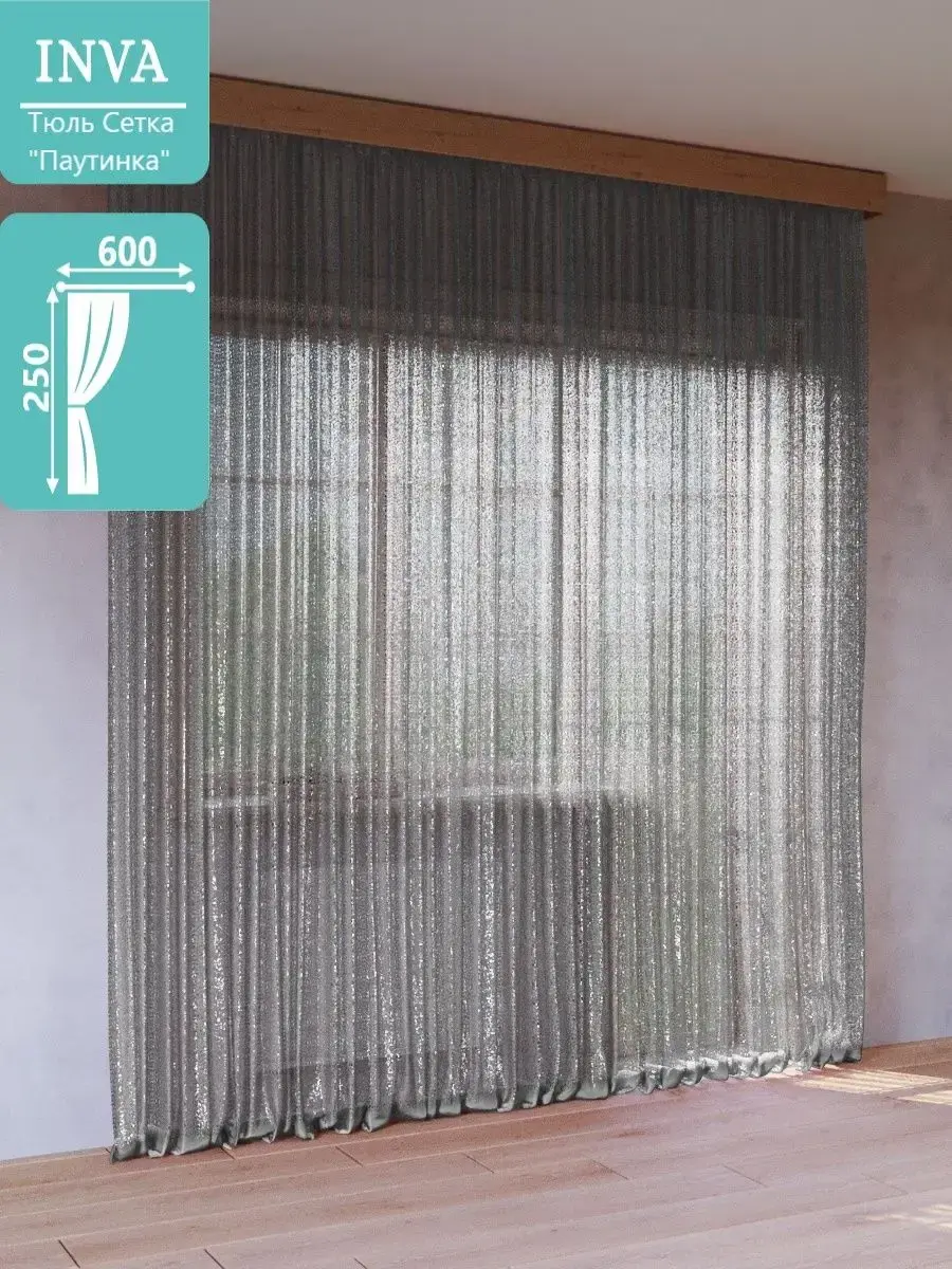Тюль сетка Паутинка 1 шт полупрозрачная, с нежным узором идеально подойдет для оформления интерьера в любой комнате, высота 250 см ширина 600 см, необыкновенно воздушная, легкая и красивая, будет стильным декором для комнат в вашем доме. Декоративная однотонная тюлевая штора Паутинка 250*600 будет отличным аксессуаром для гостиной, для спальни, для кухни и в детскую комнату или в качестве декора в беседке в саду. Она выполнена из качественного полотна из Турции, ее состав это 100 процентный полиэстер. Придает уют и понравится и взрослым, и детям. В комплекте имеется крепление к карнизу для крючков или штанги. Сетка из синтетической ткани 250 600 сочетается как с портьерами, аксессуарами, с короткими и длинными нитяными, рулонными шторами, гардинами, канвас, лен, мрамор, рогожка, комплект шторы блэкаут blackout. Зановески с сеткой в виде паутинки представлены в разных цветах и подойдут в дом, квартиру, для дачи и на балкон. Тюль занавеска подходит для потолочного карниза шириной до 300 сантиметров а так же для карниза со штангой с диаметром до 20 мм. К шторе пришита шторная прозрачная лента шириной 6см, которая легко стягивается на четыре кордовые нити и создает аккуратные складки в форме "бабочки". Обязательно проверьте нити в шторной ленте, они должны быть надежно завязаны с одного края. Мягкая, легкая туль с элегантными складками, идеально вписывается в интерьер. Вуаль хорошо пропускает свет, устойчива к воздействию прямых солнечных лучей. В составе ткани полиэфирное волокно, что делает изделие практичным и устойчивым к большому количеству стирок. Уход: стирка при 40 градусах, деликатный отжим, отбеливание запрещено.