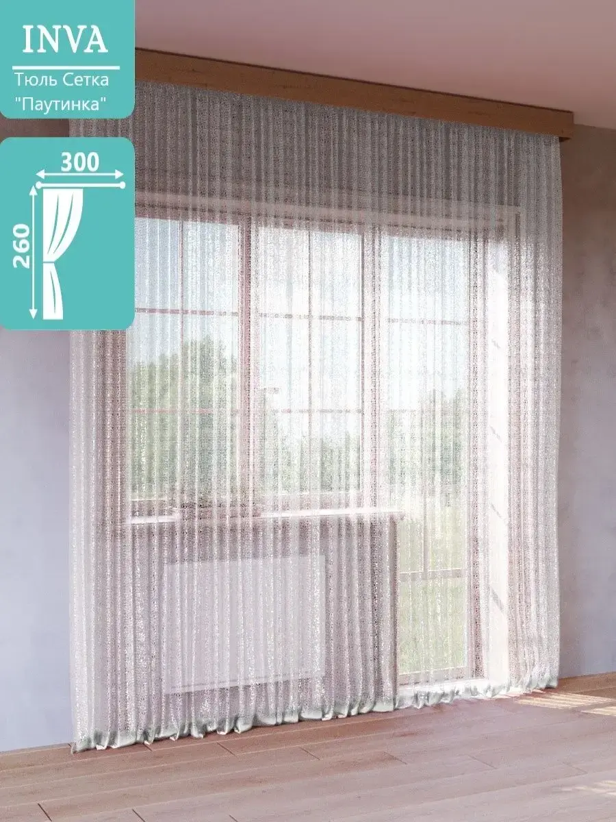 Тюль сетка Паутинка 1 шт полупрозрачная, с нежным узором идеально подойдет для оформления интерьера в любой комнате, высота 260 см ширина 300 см, необыкновенно воздушная, легкая и красивая, будет стильным декором для комнат в вашем доме. Декоративная однотонная тюлевая штора Паутинка 260*300 будет отличным аксессуаром для гостиной, для спальни, для кухни и в детскую комнату или в качестве декора в беседке в саду. Она выполнена из качественного полотна из Турции, ее состав это 100 процентный полиэстер. Придает уют и понравится и взрослым, и детям. В комплекте имеется крепление к карнизу для крючков или штанги. Сетка из синтетической ткани 260 300 сочетается как с портьерами, аксессуарами, с короткими и длинными нитяными, рулонными шторами, гардинами, канвас, лен, мрамор, рогожка, комплект шторы блэкаут blackout. Зановески с сеткой в виде паутинки представлены в разных цветах и подойдут в дом, квартиру, для дачи и на балкон. Тюль занавеска подходит для потолочного карниза шириной до 300 сантиметров а так же для карниза со штангой с диаметром до 20 мм. К шторе пришита шторная прозрачная лента шириной 6см, которая легко стягивается на четыре кордовые нити и создает аккуратные складки в форме "бабочки". Обязательно проверьте нити в шторной ленте, они должны быть надежно завязаны с одного края. Мягкая, легкая туль с элегантными складками, идеально вписывается в интерьер. Вуаль хорошо пропускает свет, устойчива к воздействию прямых солнечных лучей. В составе ткани полиэфирное волокно, что делает изделие практичным и устойчивым к большому количеству стирок. Уход: стирка при 40 градусах, деликатный отжим, отбеливание запрещено.