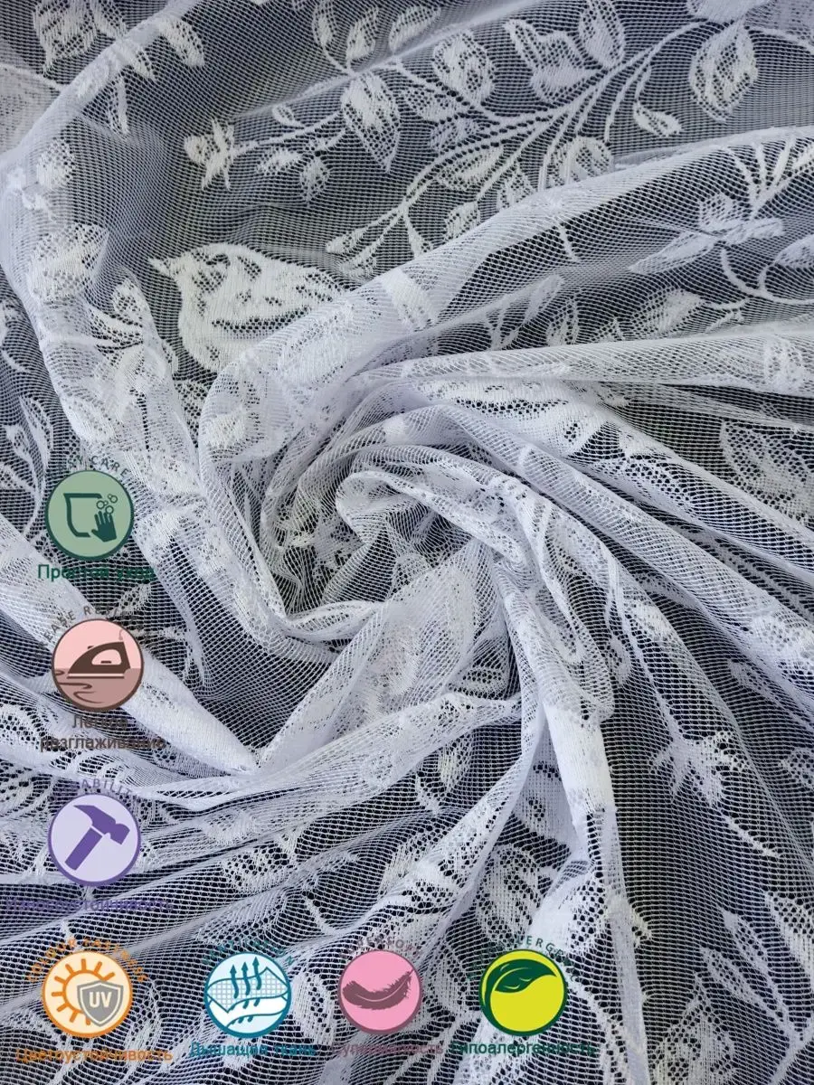 Тюль штора сетка белая Жаккард 1 шт с рельефным рисунком. Идеально подойдет для оформления интерьера в любой комнате, высота 260 см ширина 600 см. Воздушная, легкая и красивая, будет стильным декором для комнат в вашем доме. Длинная декоративная тюлевая штора на шторной ленте с жаккардовым рисунком на сетке 260х600 будет отличным аксессуаром для гостиной, для спальни, для кухни и в детскую комнату или в качестве декора в беседке в саду. Она выполнена из качественного полотна из Турции. Придает уют и понравится и взрослым и детям. Имеет 3 варианта крепления: на крючки с помощью шторной ленты, на кольца или на штангу диаметром до 20 мм. Интерьерная жаккардовая штора сетка с рельефным рисунком 2,6 м х 6 м, сочетается с портьерами, с короткими и длинными нитяными, рулонными шторами. С гардинами канвас, лен, мрамор, рогожка. Со шторами блэкаут blackout. Жаккардовая тюль сетка украсит оконный проем в любой комнате: в столовой, кабинете и детской, на кухне как кухонный вариант. Вы можете повесить тюль на гардину на балконе, лоджии, веранде или в качестве декора в беседке в саду. Зановеска сетка с рельефным рисунком стягивается на четыре кордовые нити и создает аккуратные складки в форме "бабочки". Обязательно проверьте нити в шторной ленте, они должны быть надежно завязаны с одного края. Мягкая, легкая туль с элегантными складками, идеально вписывается в интерьер. Сетка Жакакард с рисунком хорошо пропускает свет, устойчива к воздействию прямых солнечных лучей. В составе ткани полиэфирное волокно, что делает изделие практичным и устойчивым к большому количеству стирок. Уход: стирка при 30 градусах, деликатный отжим, отбеливание запрещено. Тюль Турция.