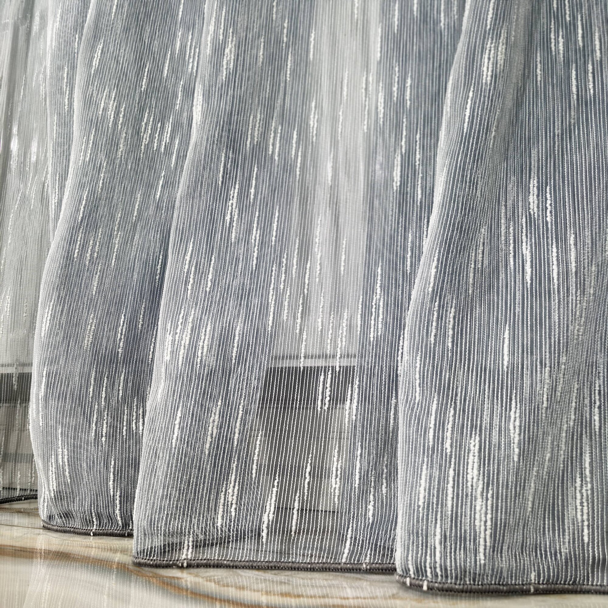Тюль оснащен шторной лентой шириной 6 см, которая позволяет легко создавать аккуратные складки в форме "бабочки". Рекомендуемая сборка 1:2 обеспечивает идеальное сочетание объема и драпировки.