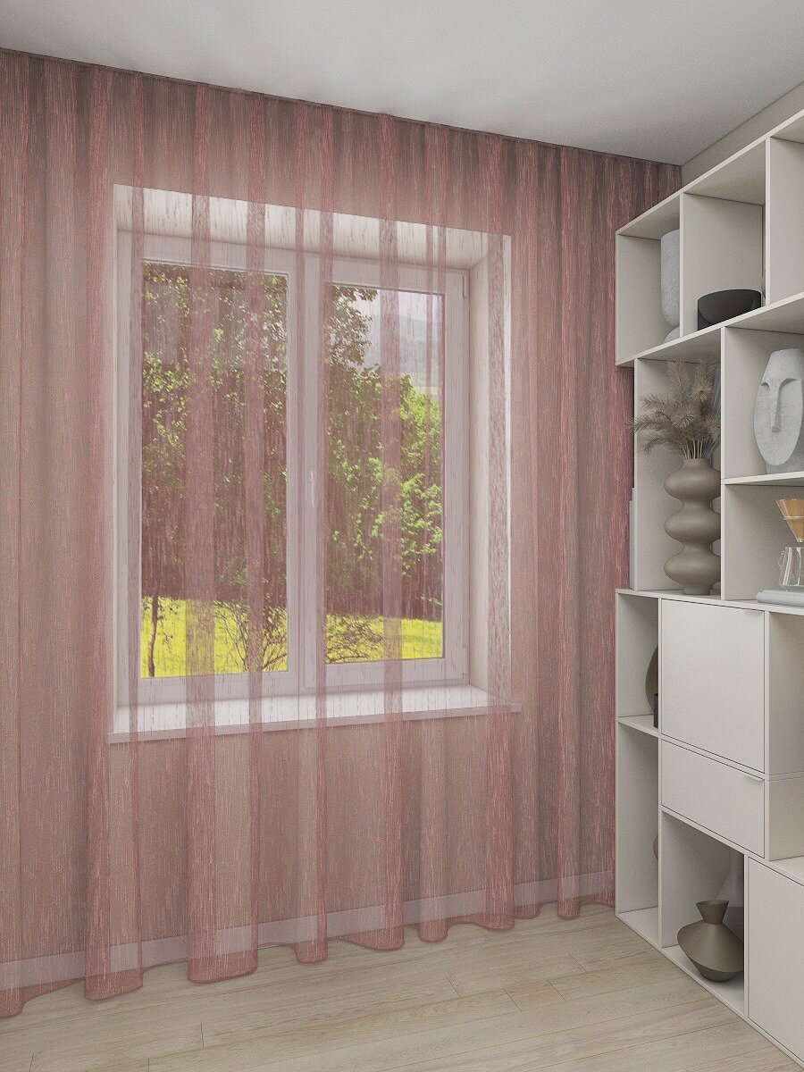 Тюль выполнен из ткани "лён", которая отличается своей прочностью и долговечностью. В составе ткани полиэфирное волокно, что делает изделие устойчивым к большому количеству стирок и сохраняет его первоначальный вид на долгое время.
