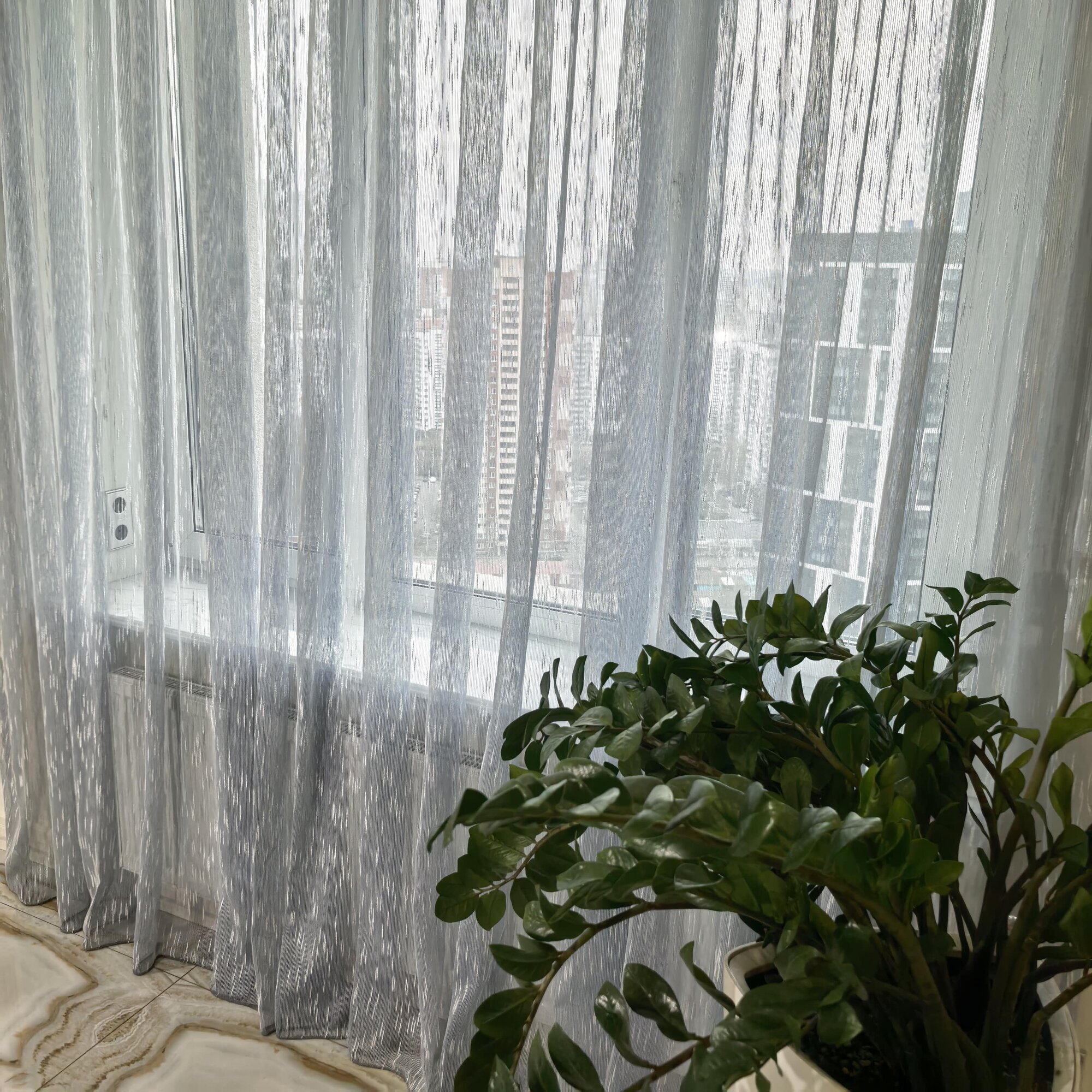 Тюль изготовлен из полиэстера, что делает его практичным и устойчивым к большому количеству стирок. Рекомендуется стирка при 30 градусах с деликатным отжимом, отбеливание запрещено.