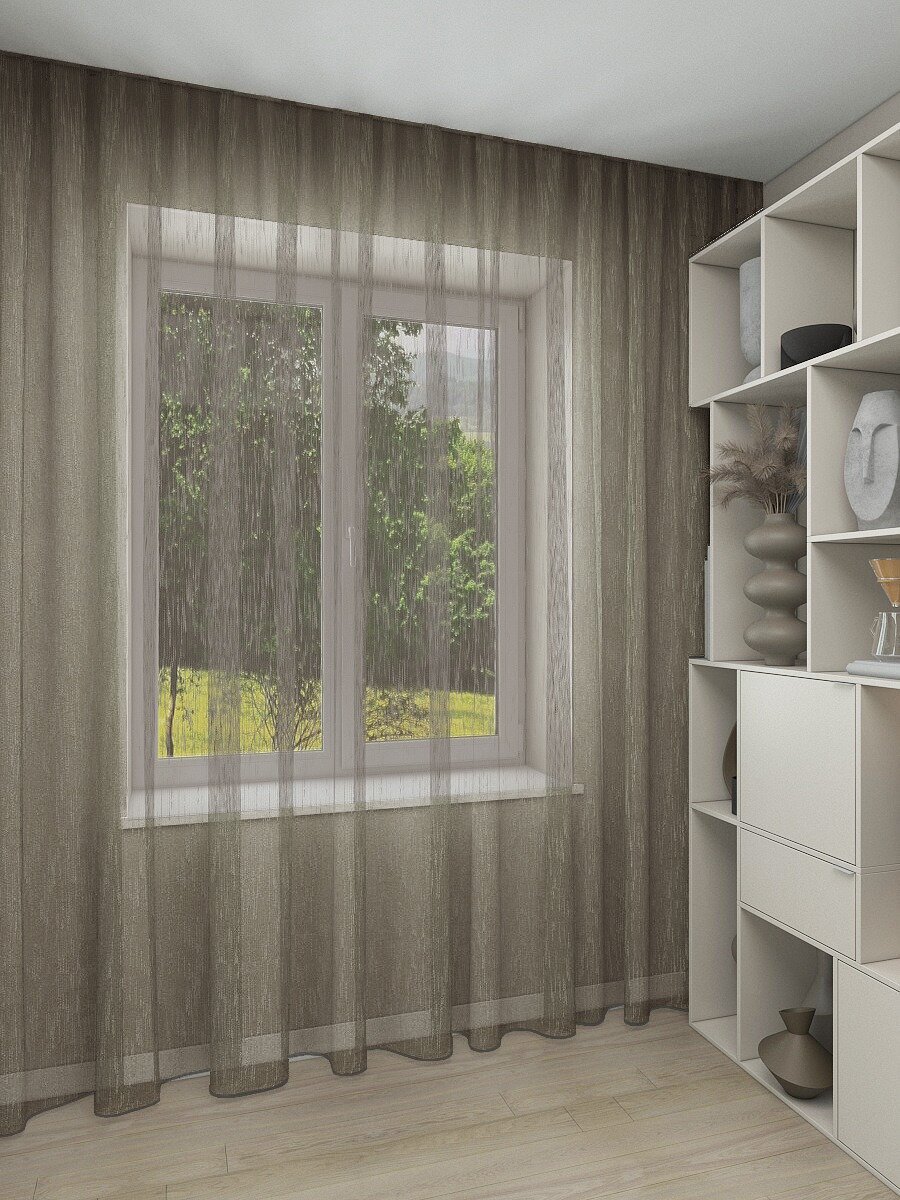 Тюль INVA "Дождик" выполнен в коричневом цвете, который легко сочетается с различными интерьерами и стилями. Рисунок "Дождик" пропускает свет и устойчив к воздействию прямых солнечных лучей.