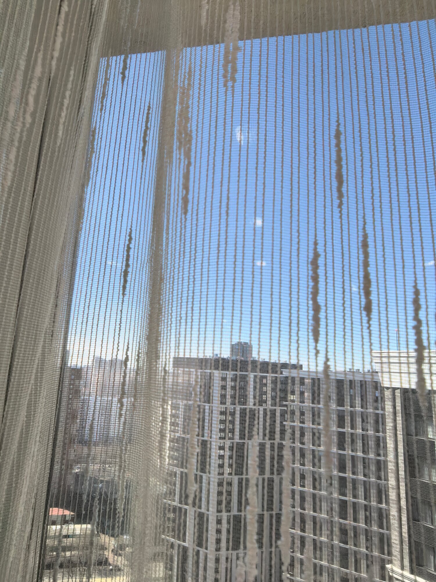 Стирайте тюль при 30 градусах с деликатным отжимом, отбеливание запрещено. Тюль хорошо держит форму, пропускает воздух и солнечные лучи.