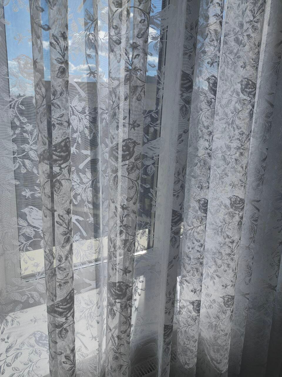 Тюль выполнен из качественного полотна, произведенного в Турции. Жаккардовый тюль - это легкая полупрозрачная материя с разнообразными узорами утонченного кружевного плетения. Рисунок "Птички" придает тюли особый шарм и делает ее привлекательной для взрослых и детей.