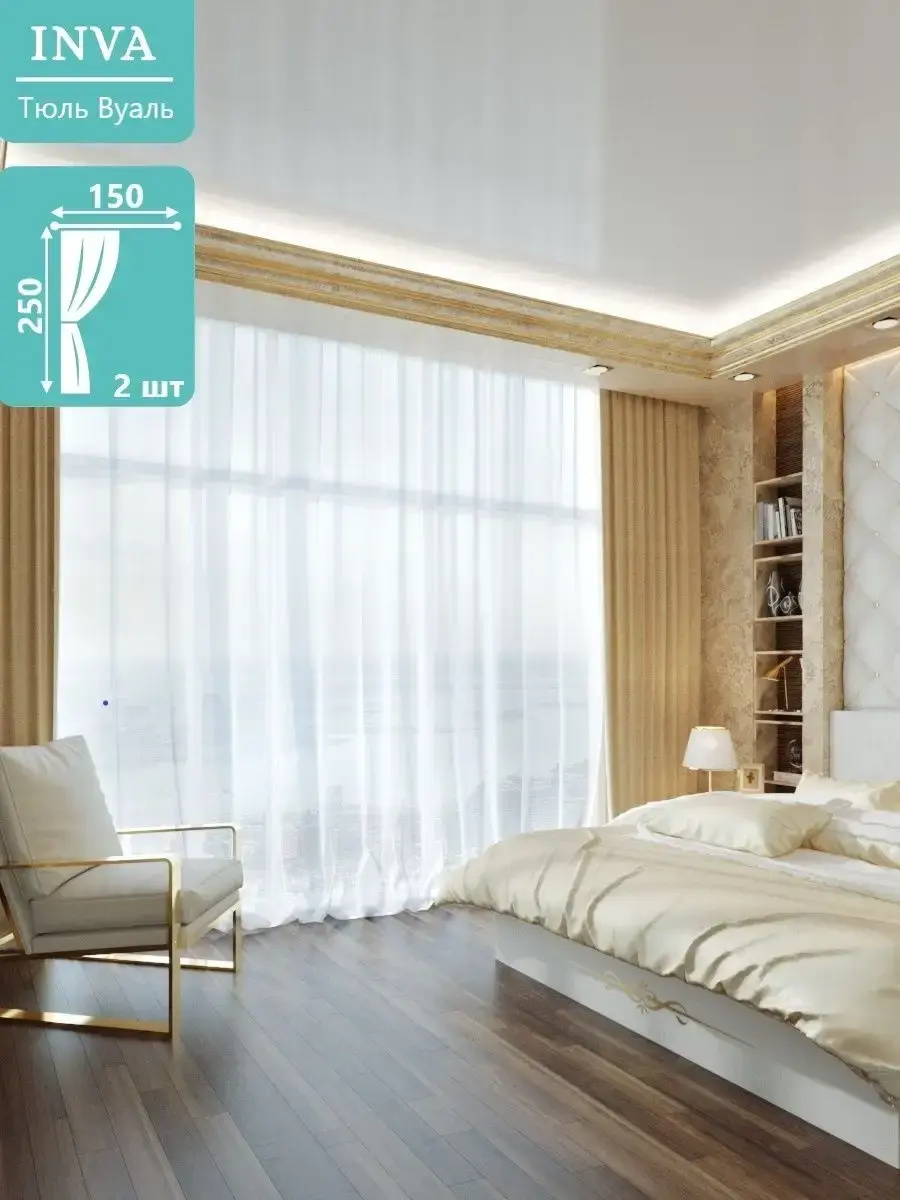 Готовая длинная тюль вуаль на шторной ленте, в комплект из 2х штук, высота 250 см ширина 150 см. Комплект из 2х штук, подойдет для любых комнат – в спальню, в гостиную, в детскую и даже для кухни. Длинная гардина будет отличным аксессуаром в столовой, кабинете для гостиной, для спальни, для кухни и в детскую комнату. В качестве декора в беседке в саду. Вы можете повесить тюль на гардину на балконе, лоджии, веранде. Имеет 3 варианта крепления: на крючки с помощью шторной ленты, на кольца или на штангу диаметром до 30 мм. К шторе пришита прозрачная лента шириной 6 см, которая легко стягивается на четыре кордовые нити и создает аккуратные складки в форме "бабочки". Обязательно проверьте нити в шторной ленте, они должны быть надежно завязаны с одного края. Мягкий, легкий тюль с элегантными складками, идеально вписывается в интерьер. Хорошо пропускает свет, устойчива к воздействию прямых солнечных лучей. В составе ткани полиэфирное волокно, что делает изделие практичным и устойчивым к большому количеству стирок. Уход: стирка при 30 градусах, деликатный отжим, отбеливание запрещено.