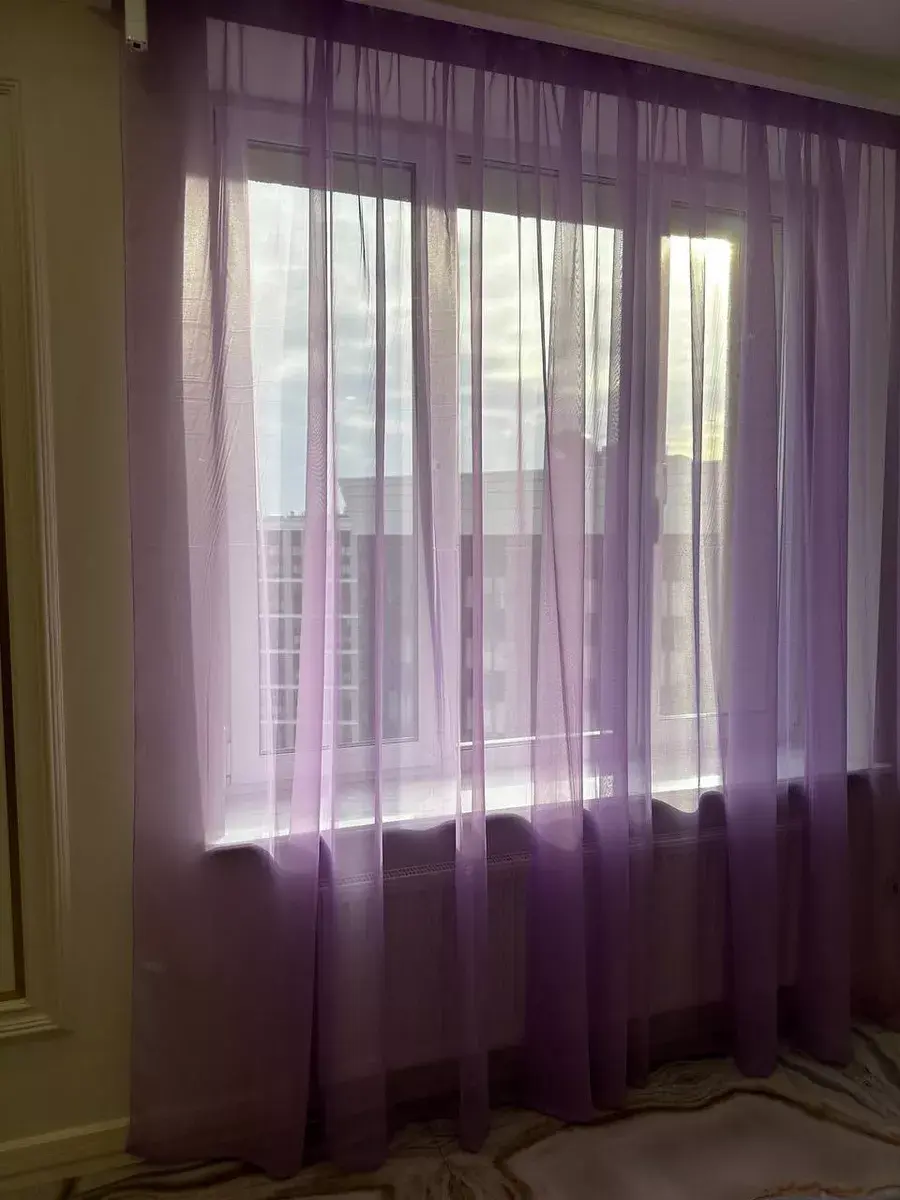 Тюль 1шт из полупрозрачной вуали, высота 240 см ширина 200 см, необыкновенно воздушная, легкая и красивая, будет стильным декором для комнат в вашем доме. Сиреневая тюль будет отличным аксессуаром для гостиной, для спальни, для кухни и в детскую комнату. В комплекте имеется крепление к карнизу для крючков или штанги. Прекрасно смотрятся как с портьерами, аксессуарами, с короткими и длинными нитяными, рулонными шторами, гардинами, канвас, лен, мрамор, рогожка, комплект шторы блэкаут blackout. Зановески представлены в разных цветах и подойдут в дом, квартиру, для дачи и на балкон. Тюль подходит для потолочного карниза шириной до 300 сантиметров а так же для карниза со штангой с диаметром до 20 мм. К шторе пришита шторная белая лента шириной 6см, которая легко стягивается на четыре кордовые нити и создает аккуратные складки в форме "бабочки". Обязательно проверьте нити в шторной ленте, они должны быть надежно завязаны с одного края. Мягкая, легкая занавеска с элегантными складками, идеально вписывается в интерьер. Вуаль хорошо пропускает свет, устойчива к воздействию прямых солнечных лучей. В составе ткани полиэфирное волокно, что делает изделие практичным и устойчивым к большому количеству стирок. Уход: стирка при 40 градусах, деликатный отжим, отбеливание запрещено.