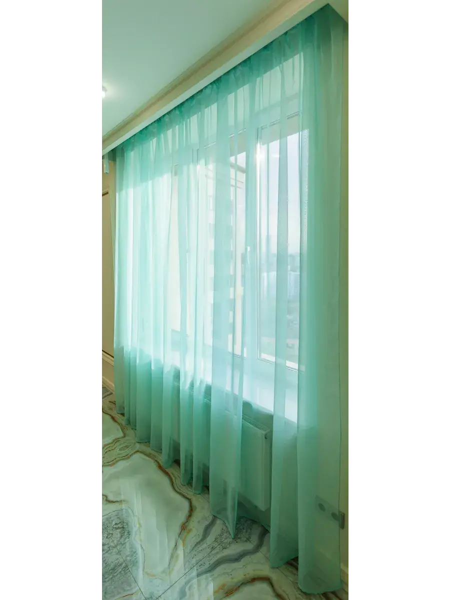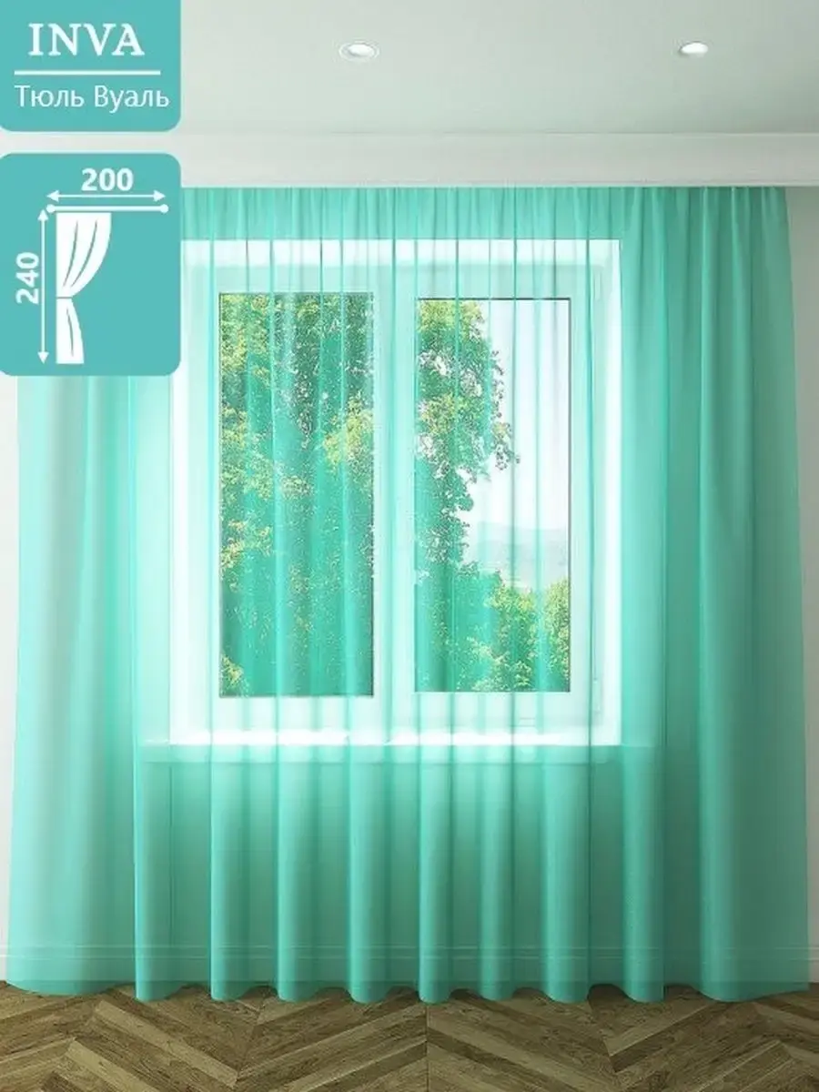 Тюль 1шт из полупрозрачной вуали, высота 240 см ширина 200 см, необыкновенно воздушная, легкая и красивая, будет стильным декором для комнат в вашем доме. Светло-бирюзовая тюль будет отличным аксессуаром для гостиной, для спальни, для кухни и в детскую комнату. В комплекте имеется крепление к карнизу для крючков или штанги. Прекрасно смотрятся как с портьерами, аксессуарами, с короткими и длинными нитяными, рулонными шторами, гардинами, канвас, лен, мрамор, рогожка, комплект шторы блэкаут blackout. Зановески представлены в разных цветах и подойдут в дом, квартиру, для дачи и на балкон. Тюль подходит для потолочного карниза шириной до 300 сантиметров а так же для карниза со штангой с диаметром до 20 мм. К шторе пришита шторная белая лента шириной 6см, которая легко стягивается на четыре кордовые нити и создает аккуратные складки в форме "бабочки". Обязательно проверьте нити в шторной ленте, они должны быть надежно завязаны с одного края. Мягкая, легкая занавеска с элегантными складками, идеально вписывается в интерьер. Вуаль хорошо пропускает свет, устойчива к воздействию прямых солнечных лучей. В составе ткани полиэфирное волокно, что делает изделие практичным и устойчивым к большому количеству стирок. Уход: стирка при 40 градусах, деликатный отжим, отбеливание запрещено.