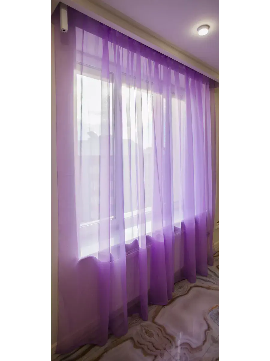Комплект 2шт из двух полупрозрачный вуалей, высота 240см и ширина 150см, необыкновенно воздушные, легкие и красивые, будут стильным декором для комнат в вашем доме. Сиреневая тюль будет отличным аксессуаром для гостиной, для спальни, для кухни и в детскую комнату. В комплекте имеется крепление к карнизу для крючков или штанги. Прекрасно смотрятся как с портьерами, аксессуарами, с короткими и длинными нитяными, рулонными шторами, гардинами, канвас, лен, мрамор, рогожка, комплект шторы блэкаут blackout. Зановески представлены в разных цветах и подойдут в дом, квартиру, для дачи и на балкон. Тюль подходит для потолочного карниза шириной до 300 сантиметров, а так же для карниза со штангой с диаметром до 20 мм. К шторе пришита шторная белая лента шириной 6см, которая легко стягивается на четыре кордовые нити и создает аккуратные складки в форме "бабочки". Обязательно проверьте нити в шторной ленте, они должны быть надежно завязаны с одного края. Мягкая, легкая занавеска с элегантными складками, идеально вписывается в интерьер. Вуаль хорошо пропускает свет, устойчива к воздействию прямых солнечных лучей. В составе ткани полиэфирное волокно, что делает изделие практичным и устойчивым к большому количеству стирок. Уход: стирка при 40 градусах, деликатный отжим, отбеливание запрещено.