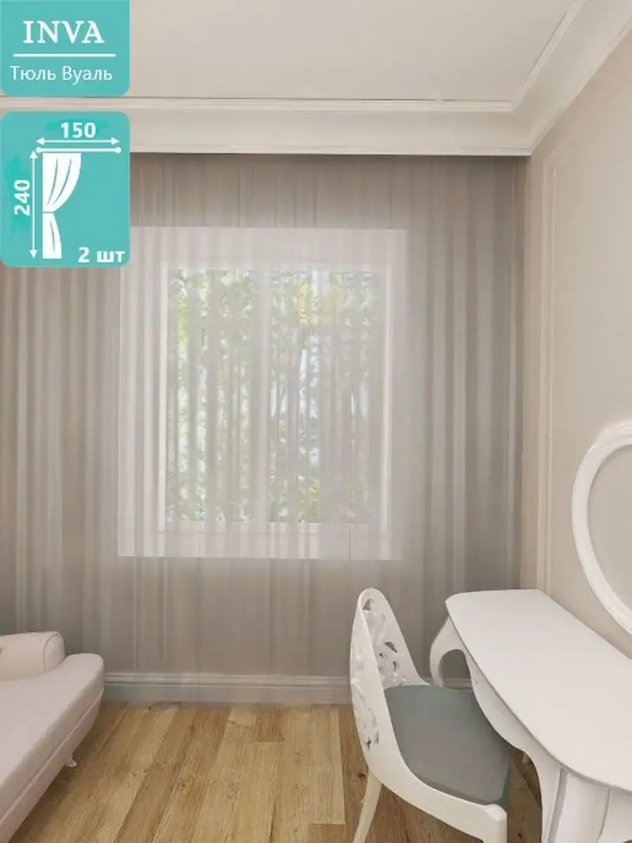 Комплект 2шт из двух полупрозрачный вуалей, высота 240см и ширина 150см, необыкновенно воздушные, легкие и красивые, будут стильным декором для комнат в вашем доме. Серая тюль будет отличным аксессуаром для гостиной, для спальни, для кухни и в детскую комнату. В комплекте имеется крепление к карнизу для крючков или штанги. Прекрасно смотрятся как с портьерами, аксессуарами, с короткими и длинными нитяными, рулонными шторами, гардинами, канвас, лен, мрамор, рогожка, комплект шторы блэкаут blackout. Зановески представлены в разных цветах и подойдут в дом, квартиру, для дачи и на балкон. Тюль подходит для потолочного карниза шириной до 300 сантиметров, а так же для карниза со штангой с диаметром до 20 мм. К шторе пришита шторная белая лента шириной 6см, которая легко стягивается на четыре кордовые нити и создает аккуратные складки в форме "бабочки". Обязательно проверьте нити в шторной ленте, они должны быть надежно завязаны с одного края. Мягкая, легкая занавеска с элегантными складками, идеально вписывается в интерьер. Вуаль хорошо пропускает свет, устойчива к воздействию прямых солнечных лучей. В составе ткани полиэфирное волокно, что делает изделие практичным и устойчивым к большому количеству стирок. Уход: стирка при 40 градусах, деликатный отжим, отбеливание запрещено.