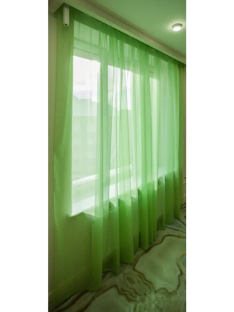 Комплект 2шт из двух полупрозрачный вуалей, высота 240см и ширина 150см, необыкновенно воздушные, легкие и красивые, будут стильным декором для комнат в вашем доме. Светло-зеленая тюль будет отличным аксессуаром для гостиной, для спальни, для кухни и в детскую комнату. В комплекте имеется крепление к карнизу для крючков или штанги. Прекрасно смотрятся как с портьерами, аксессуарами, с короткими и длинными нитяными, рулонными шторами, гардинами, канвас, лен, мрамор, рогожка, комплект шторы блэкаут blackout. Зановески представлены в разных цветах и подойдут в дом, квартиру, для дачи и на балкон. Тюль подходит для потолочного карниза шириной до 300 сантиметров, а так же для карниза со штангой с диаметром до 20 мм. К шторе пришита шторная белая лента шириной 6см, которая легко стягивается на четыре кордовые нити и создает аккуратные складки в форме "бабочки". Обязательно проверьте нити в шторной ленте, они должны быть надежно завязаны с одного края. Мягкая, легкая занавеска с элегантными складками, идеально вписывается в интерьер. Вуаль хорошо пропускает свет, устойчива к воздействию прямых солнечных лучей. В составе ткани полиэфирное волокно, что делает изделие практичным и устойчивым к большому количеству стирок. Уход: стирка при 40 градусах, деликатный отжим, отбеливание запрещено.