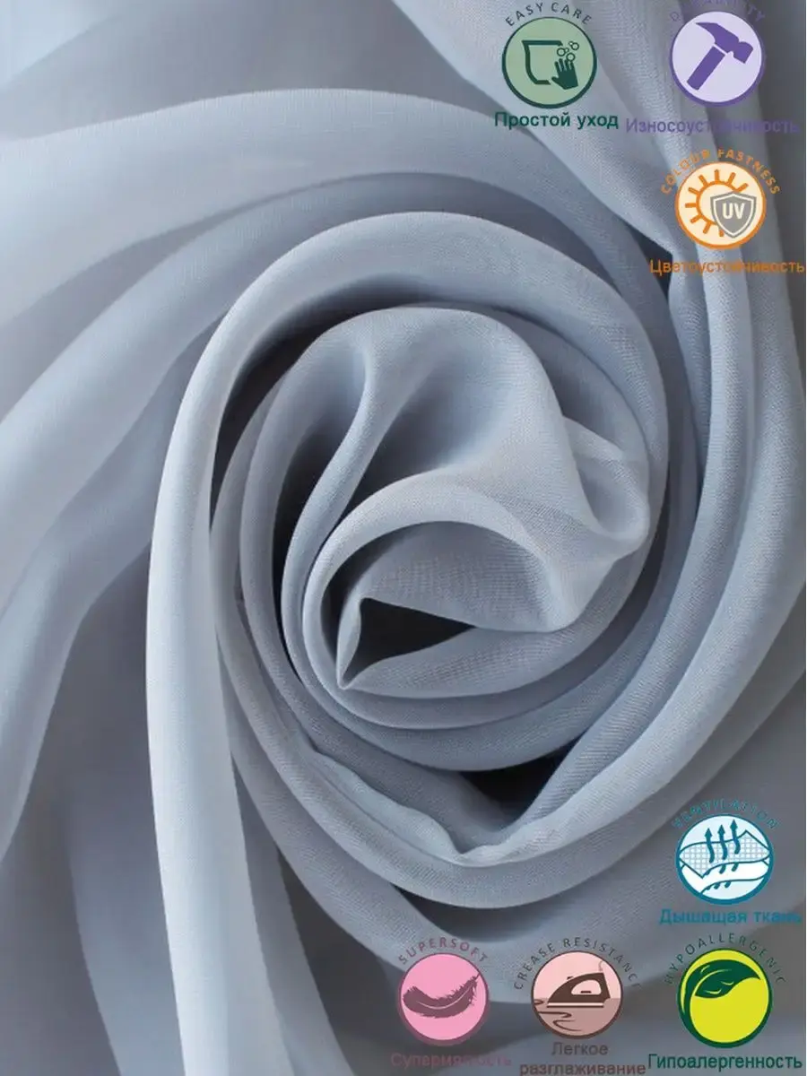 Готовая тюль штора вуаль 1 шт. Идеально подойдет для оформления интерьера в любой комнате, высота 240 см ширина 300 см. Воздушная, легкая и красивая, будет стильным декором для комнат в вашем доме. Длинная декоративная тюлевая штора на шторной ленте 2,4 м х 3 м будет отличным аксессуаром для гостиной, для спальни, для кухни и в детскую комнату или в качестве декора в беседке в саду. Придает уют и понравится и взрослым и детям. Имеет 3 варианта крепления: на крючки с помощью шторной ленты, на кольца или на штангу диаметром до 20 мм. Интерьерная тюль вуаль 240х300 сочетается с портьерами, с короткими и длинными нитяными, рулонными шторами. С гардинами канвас, лен, мрамор, рогожка. Со шторами блэкаут blackout. Тонкий тюль-вуаль украсит оконный проем в любой комнате: в столовой, кабинете и детской, на кухне как кухонный вариант. Вы можете повесить тюль на гардину на балконе, лоджии, веранде или в качестве декора в беседке в саду. Зановеска вуаль подойдет в дом, квартиру, для дачи и на балкон. Тюль занавеска подходит для потолочного карниза шириной до 300 сантиметров а так же для карниза со штангой с диаметром до 20 мм. К шторе пришита шторная лента шириной 6см, которая легко стягивается на четыре кордовые нити и создает аккуратные складки в форме "бабочки". Обязательно проверьте нити в шторной ленте, они должны быть надежно завязаны с одного края. Мягкая, легкая туль с элегантными складками, идеально вписывается в интерьер. Вуаль хорошо пропускает свет, устойчива к воздействию прямых солнечных лучей. В составе ткани полиэфирное волокно, что делает изделие практичным и устойчивым к большому количеству стирок. Уход: стирка при 30 градусах, деликатный отжим, отбеливание запрещено.