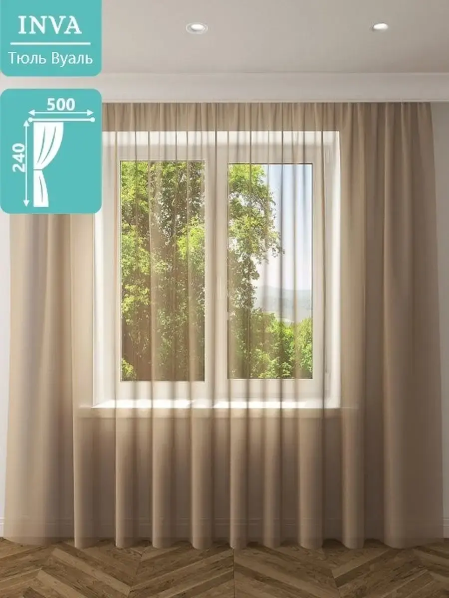 Готовая тюль штора вуаль 1 шт. Идеально подойдет для оформления интерьера в любой комнате, высота 240 см ширина 500 см. Воздушная, легкая и красивая, будет стильным декором для комнат в вашем доме. Длинная декоративная тюлевая штора на шторной ленте 2,4 м х 5 м будет отличным аксессуаром для гостиной, для спальни, для кухни и в детскую комнату или в качестве декора в беседке в саду. Придает уют и понравится и взрослым и детям. Имеет 3 варианта крепления: на крючки с помощью шторной ленты, на кольца или на штангу диаметром до 20 мм. Интерьерная тюль вуаль 240х500 сочетается с портьерами, с короткими и длинными нитяными, рулонными шторами. С гардинами канвас, лен, мрамор, рогожка. Со шторами блэкаут blackout. Тонкий тюль-вуаль украсит оконный проем в любой комнате: в столовой, кабинете и детской, на кухне как кухонный вариант. Вы можете повесить тюль на гардину на балконе, лоджии, веранде или в качестве декора в беседке в саду. Зановеска вуаль подойдет в дом, квартиру, для дачи и на балкон. Тюль занавеска подходит для потолочного карниза шириной до 300 сантиметров а так же для карниза со штангой с диаметром до 20 мм. К шторе пришита шторная лента шириной 6см, которая легко стягивается на четыре кордовые нити и создает аккуратные складки в форме "бабочки". Обязательно проверьте нити в шторной ленте, они должны быть надежно завязаны с одного края. Мягкая, легкая туль с элегантными складками, идеально вписывается в интерьер. Вуаль хорошо пропускает свет, устойчива к воздействию прямых солнечных лучей. В составе ткани полиэфирное волокно, что делает изделие практичным и устойчивым к большому количеству стирок. Уход: стирка при 30 градусах, деликатный отжим, отбеливание запрещено.