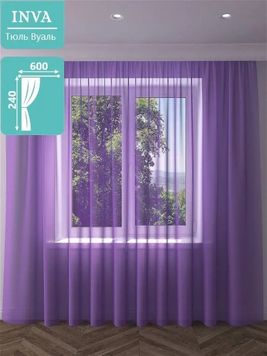 Готовая тюль штора вуаль 1 шт. Идеально подойдет для оформления интерьера в любой комнате, высота 240 см ширина 600 см. Воздушная, легкая и красивая, будет стильным декором для комнат в вашем доме. Длинная декоративная тюлевая штора на шторной ленте 2,4 м х 6 м будет отличным аксессуаром для гостиной, для спальни, для кухни и в детскую комнату или в качестве декора в беседке в саду. Придает уют и понравится и взрослым и детям. Имеет 3 варианта крепления: на крючки с помощью шторной ленты, на кольца или на штангу диаметром до 20 мм. Интерьерная тюль вуаль 240х600 сочетается с портьерами, с короткими и длинными нитяными, рулонными шторами. С гардинами канвас, лен, мрамор, рогожка. Со шторами блэкаут blackout. Тонкий тюль-вуаль украсит оконный проем в любой комнате: в столовой, кабинете и детской, на кухне как кухонный вариант. Вы можете повесить тюль на гардину на балконе, лоджии, веранде или в качестве декора в беседке в саду. Зановеска вуаль подойдет в дом, квартиру, для дачи и на балкон. Тюль занавеска подходит для потолочного карниза шириной до 300 сантиметров а так же для карниза со штангой с диаметром до 20 мм. К шторе пришита шторная лента шириной 6см, которая легко стягивается на четыре кордовые нити и создает аккуратные складки в форме "бабочки". Обязательно проверьте нити в шторной ленте, они должны быть надежно завязаны с одного края. Мягкая, легкая туль с элегантными складками, идеально вписывается в интерьер. Вуаль хорошо пропускает свет, устойчива к воздействию прямых солнечных лучей. В составе ткани полиэфирное волокно, что делает изделие практичным и устойчивым к большому количеству стирок. Уход: стирка при 30 градусах, деликатный отжим, отбеливание запрещено.