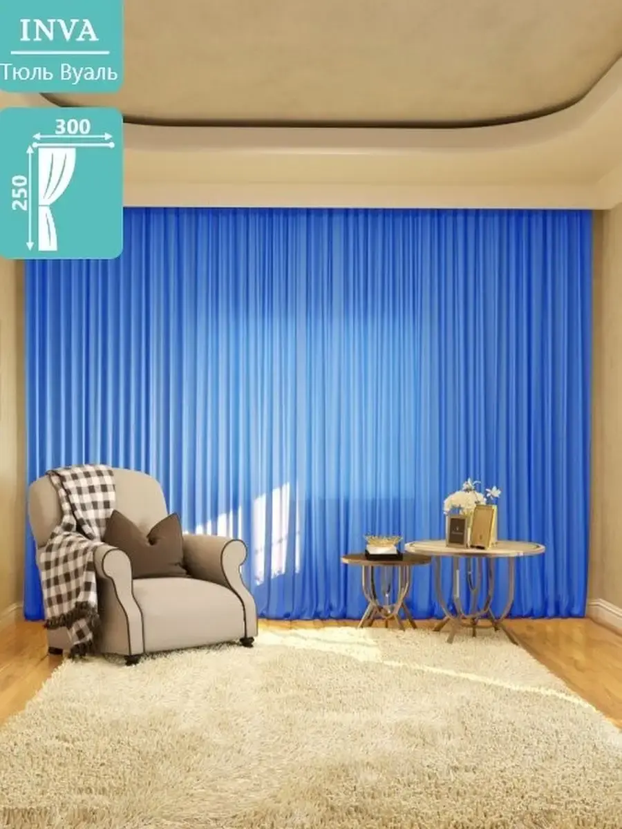 Готовая тюль штора вуаль 1 шт. Идеально подойдет для оформления интерьера в любой комнате, высота 250 см ширина 300 см. Воздушная, легкая и красивая, будет стильным декором для комнат в вашем доме. Длинная декоративная тюлевая штора на шторной ленте 2,5 м х 3 м будет отличным аксессуаром для гостиной, для спальни, для кухни и в детскую комнату или в качестве декора в беседке в саду. Придает уют и понравится и взрослым и детям. Имеет 3 варианта крепления: на крючки с помощью шторной ленты, на кольца или на штангу диаметром до 20 мм. Интерьерная тюль вуаль 250х300 сочетается с портьерами, с короткими и длинными нитяными, рулонными шторами. С гардинами канвас, лен, мрамор, рогожка. Со шторами блэкаут blackout. Тонкий тюль-вуаль украсит оконный проем в любой комнате: в столовой, кабинете и детской, на кухне как кухонный вариант. Вы можете повесить тюль на гардину на балконе, лоджии, веранде или в качестве декора в беседке в саду. Зановеска вуаль подойдет в дом, квартиру, для дачи и на балкон. Тюль занавеска подходит для потолочного карниза шириной до 300 сантиметров а так же для карниза со штангой с диаметром до 20 мм. К шторе пришита шторная лента шириной 6см, которая легко стягивается на четыре кордовые нити и создает аккуратные складки в форме "бабочки". Обязательно проверьте нити в шторной ленте, они должны быть надежно завязаны с одного края. Мягкая, легкая туль с элегантными складками, идеально вписывается в интерьер. Вуаль хорошо пропускает свет, устойчива к воздействию прямых солнечных лучей. В составе ткани полиэфирное волокно, что делает изделие практичным и устойчивым к большому количеству стирок. Уход: стирка при 30 градусах, деликатный отжим, отбеливание запрещено.