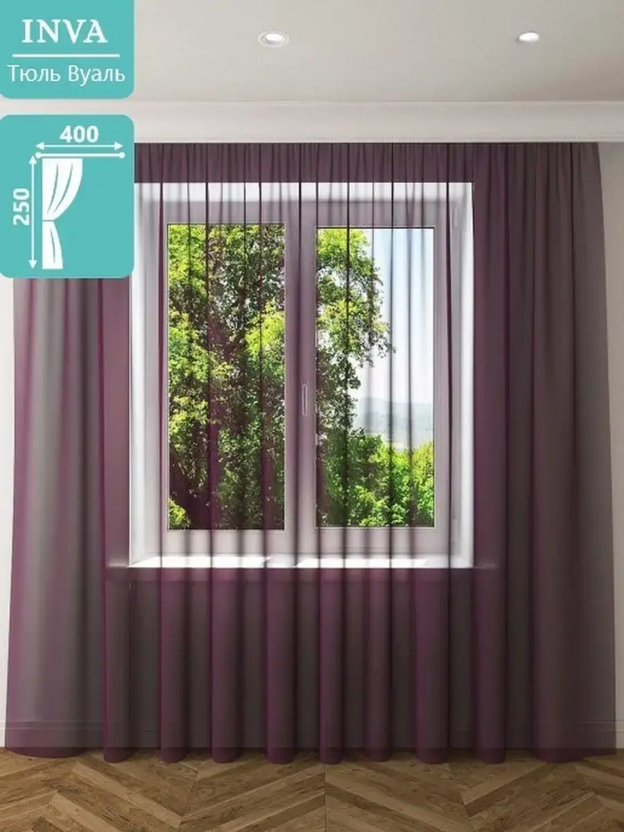 Готовая тюль штора вуаль 1 шт. Идеально подойдет для оформления интерьера в любой комнате, высота 250 см ширина 400 см. Воздушная, легкая и красивая, будет стильным декором для комнат в вашем доме. Длинная декоративная тюлевая штора на шторной ленте 2,5 м х 4 м будет отличным аксессуаром для гостиной, для спальни, для кухни и в детскую комнату или в качестве декора в беседке в саду. Придает уют и понравится и взрослым и детям. Имеет 3 варианта крепления: на крючки с помощью шторной ленты, на кольца или на штангу диаметром до 20 мм. Интерьерная тюль вуаль 250х400 сочетается с портьерами, с короткими и длинными нитяными, рулонными шторами. С гардинами канвас, лен, мрамор, рогожка. Со шторами блэкаут blackout. Тонкий тюль-вуаль украсит оконный проем в любой комнате: в столовой, кабинете и детской, на кухне как кухонный вариант. Вы можете повесить тюль на гардину на балконе, лоджии, веранде или в качестве декора в беседке в саду. Зановеска вуаль подойдет в дом, квартиру, для дачи и на балкон. Тюль занавеска подходит для потолочного карниза шириной до 300 сантиметров а так же для карниза со штангой с диаметром до 20 мм. К шторе пришита шторная лента шириной 6см, которая легко стягивается на четыре кордовые нити и создает аккуратные складки в форме "бабочки". Обязательно проверьте нити в шторной ленте, они должны быть надежно завязаны с одного края. Мягкая, легкая туль с элегантными складками, идеально вписывается в интерьер. Вуаль хорошо пропускает свет, устойчива к воздействию прямых солнечных лучей. В составе ткани полиэфирное волокно, что делает изделие практичным и устойчивым к большому количеству стирок. Уход: стирка при 30 градусах, деликатный отжим, отбеливание запрещено.