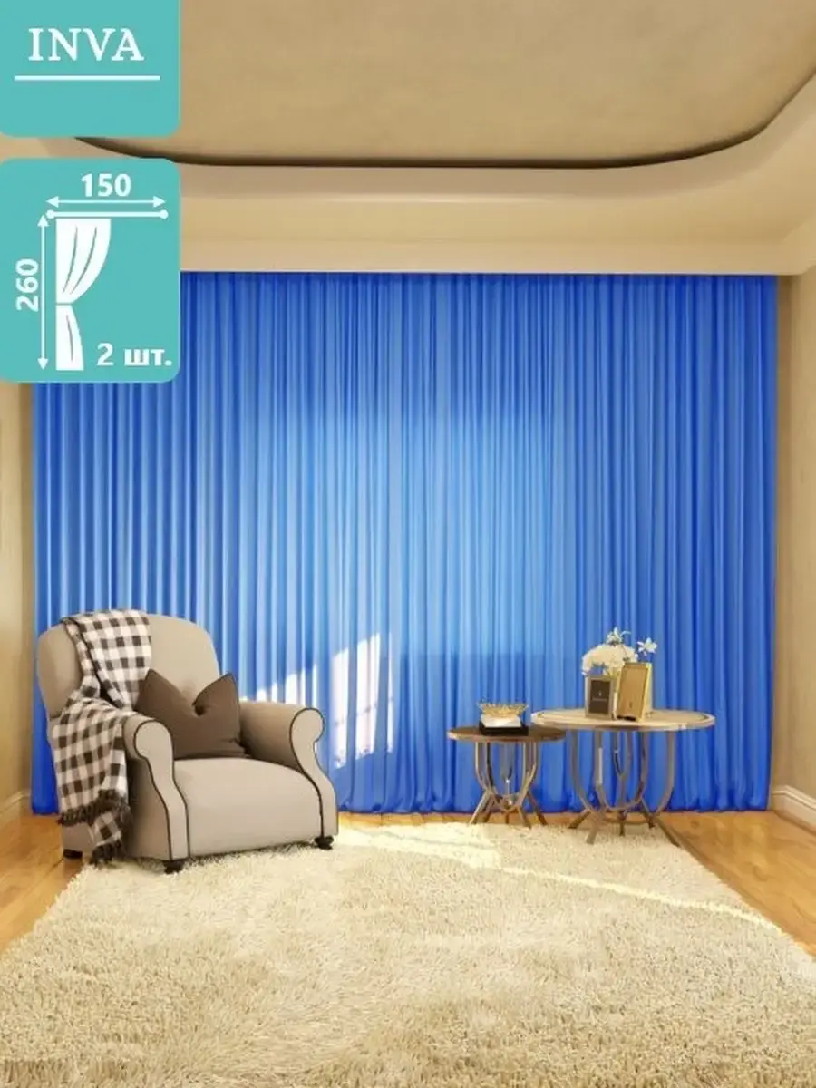Готовая длинная тюль вуаль на шторной ленте, в комплект из 2х штук, высота 260 см ширина 150 см. Комплект из 2х штук, подойдет для любых комнат – в спальню, в гостиную, в детскую и даже для кухни. Длинная гардина будет отличным аксессуаром в столовой, кабинете для гостиной, для спальни, для кухни и в детскую комнату. В качестве декора в беседке в саду. Вы можете повесить тюль на гардину на балконе, лоджии, веранде. Имеет 3 варианта крепления: на крючки с помощью шторной ленты, на кольца или на штангу диаметром до 30 мм. К шторе пришита прозрачная лента шириной 6 см, которая легко стягивается на четыре кордовые нити и создает аккуратные складки в форме "бабочки". Обязательно проверьте нити в шторной ленте, они должны быть надежно завязаны с одного края. Мягкий, легкий тюль с элегантными складками, идеально вписывается в интерьер. Хорошо пропускает свет, устойчива к воздействию прямых солнечных лучей. В составе ткани полиэфирное волокно, что делает изделие практичным и устойчивым к большому количеству стирок. Уход: стирка при 30 градусах, деликатный отжим, отбеливание запрещено.