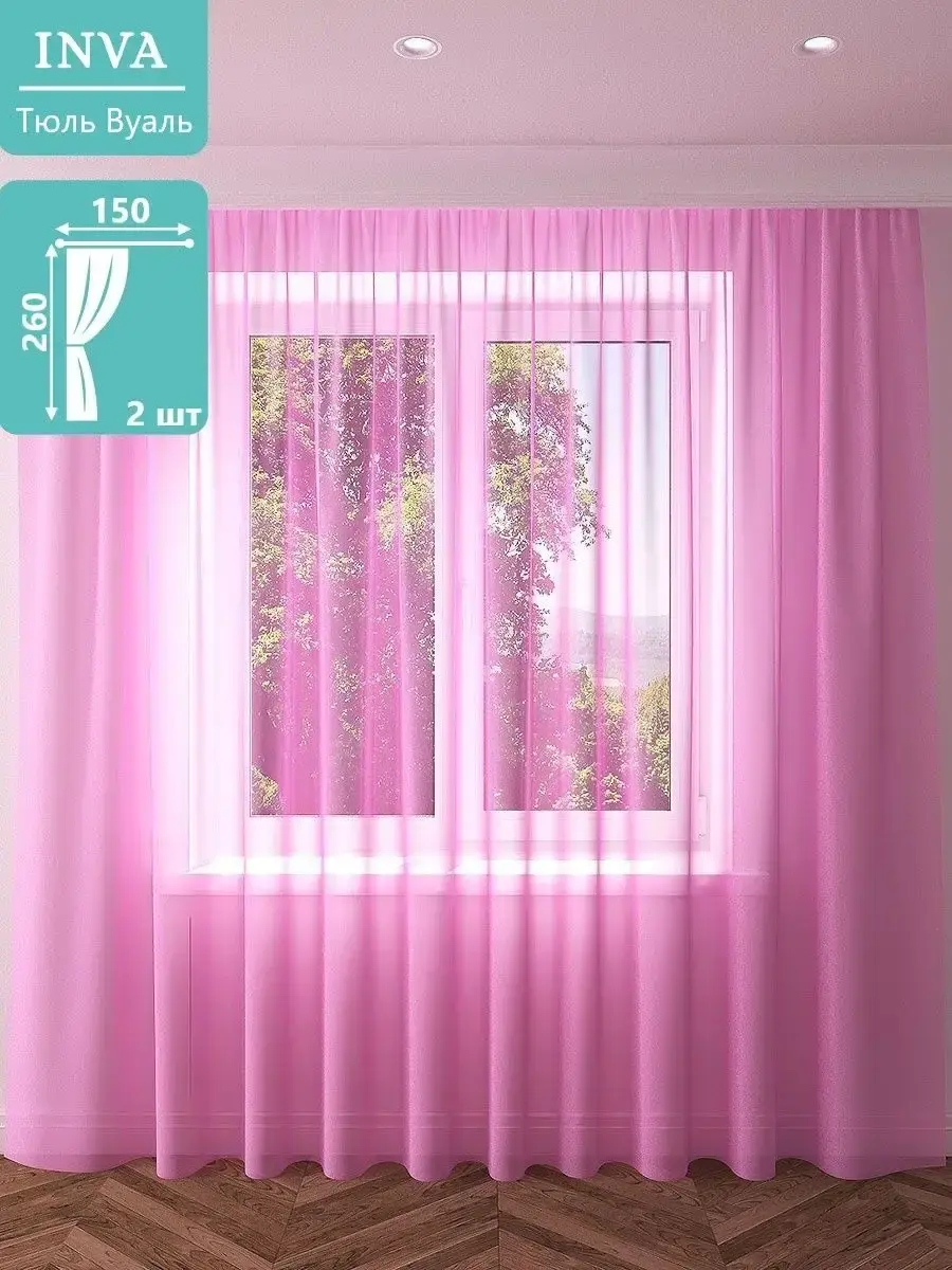 Готовая длинная тюль вуаль на шторной ленте, в комплект из 2х штук, высота 260 см ширина 150 см. Комплект из 2х штук, подойдет для любых комнат – в спальню, в гостиную, в детскую и даже для кухни. Длинная гардина будет отличным аксессуаром в столовой, кабинете для гостиной, для спальни, для кухни и в детскую комнату. В качестве декора в беседке в саду. Вы можете повесить тюль на гардину на балконе, лоджии, веранде. Имеет 3 варианта крепления: на крючки с помощью шторной ленты, на кольца или на штангу диаметром до 30 мм. К шторе пришита прозрачная лента шириной 6 см, которая легко стягивается на четыре кордовые нити и создает аккуратные складки в форме "бабочки". Обязательно проверьте нити в шторной ленте, они должны быть надежно завязаны с одного края. Мягкий, легкий тюль с элегантными складками, идеально вписывается в интерьер. Хорошо пропускает свет, устойчива к воздействию прямых солнечных лучей. В составе ткани полиэфирное волокно, что делает изделие практичным и устойчивым к большому количеству стирок. Уход: стирка при 30 градусах, деликатный отжим, отбеливание запрещено.
