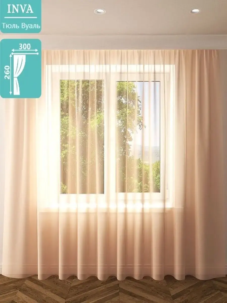 Готовая тюль штора вуаль 1 шт. Идеально подойдет для оформления интерьера в любой комнате, высота 260 см ширина 300 см. Воздушная, легкая и красивая, будет стильным декором для комнат в вашем доме. Длинная декоративная тюлевая штора на шторной ленте 2,6 м х 3 м будет отличным аксессуаром для гостиной, для спальни, для кухни и в детскую комнату или в качестве декора в беседке в саду. Придает уют и понравится и взрослым и детям. Имеет 3 варианта крепления: на крючки с помощью шторной ленты, на кольца или на штангу диаметром до 20 мм. Интерьерная тюль вуаль 260х300 сочетается с портьерами, с короткими и длинными нитяными, рулонными шторами. С гардинами канвас, лен, мрамор, рогожка. Со шторами блэкаут blackout. Тонкий тюль-вуаль украсит оконный проем в любой комнате: в столовой, кабинете и детской, на кухне как кухонный вариант. Вы можете повесить тюль на гардину на балконе, лоджии, веранде или в качестве декора в беседке в саду. Зановеска вуаль подойдет в дом, квартиру, для дачи и на балкон. Тюль занавеска подходит для потолочного карниза шириной до 300 сантиметров а так же для карниза со штангой с диаметром до 20 мм. К шторе пришита шторная лента шириной 6см, которая легко стягивается на четыре кордовые нити и создает аккуратные складки в форме "бабочки". Обязательно проверьте нити в шторной ленте, они должны быть надежно завязаны с одного края. Мягкая, легкая туль с элегантными складками, идеально вписывается в интерьер. Вуаль хорошо пропускает свет, устойчива к воздействию прямых солнечных лучей. В составе ткани полиэфирное волокно, что делает изделие практичным и устойчивым к большому количеству стирок. Уход: стирка при 30 градусах, деликатный отжим, отбеливание запрещено.