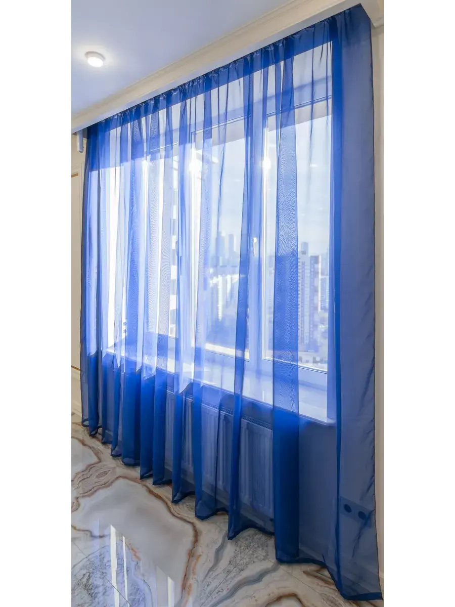 Тюль 1шт из полупрозрачной вуали, высота 270 см ширина 500 см, необыкновенно воздушная, легкая и красивая, будет стильным декором для комнат в вашем доме. Синяя тюль будет отличным аксессуаром для гостиной, для спальни, для кухни и в детскую комнату. В комплекте имеется крепление к карнизу для крючков или штанги. Прекрасно смотрятся как с портьерами, аксессуарами, с короткими и длинными нитяными, рулонными шторами, гардинами, канвас, лен, мрамор, рогожка, комплект шторы блэкаут blackout. Зановески представлены в разных цветах и подойдут в дом, квартиру, для дачи и на балкон. Тюль подходит для потолочного карниза шириной до 300 сантиметров, а так же для карниза со штангой с диаметром до 20 мм. К шторе пришита шторная белая лента шириной 6см, которая легко стягивается на четыре кордовые нити и создает аккуратные складки в форме "бабочки". Обязательно проверьте нити в шторной ленте, они должны быть надежно завязаны с одного края. Мягкая, легкая занавеска с элегантными складками, идеально вписывается в интерьер. Вуаль хорошо пропускает свет, устойчива к воздействию прямых солнечных лучей. В составе ткани полиэфирное волокно, что делает изделие практичным и устойчивым к большому количеству стирок. Уход: стирка при 40 градусах, деликатный отжим, отбеливание запрещено.